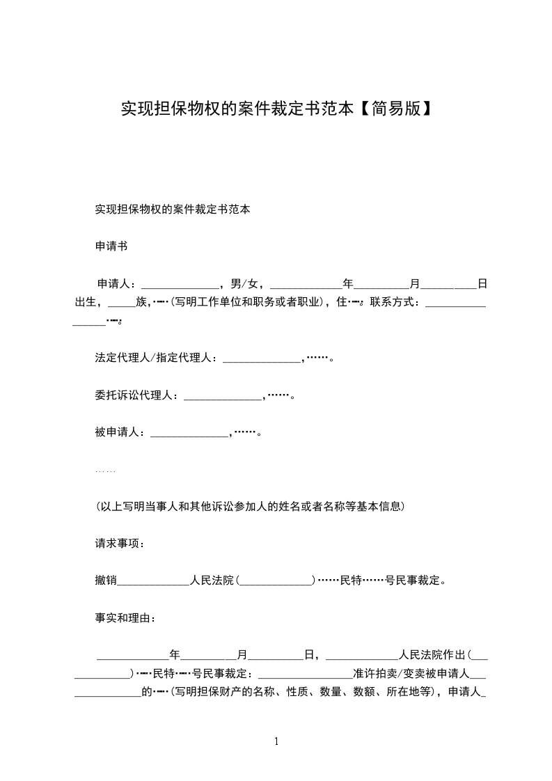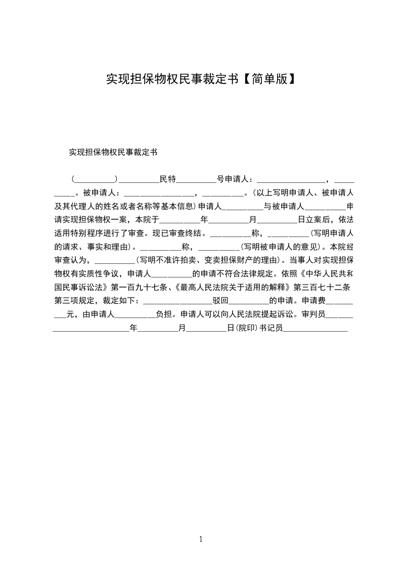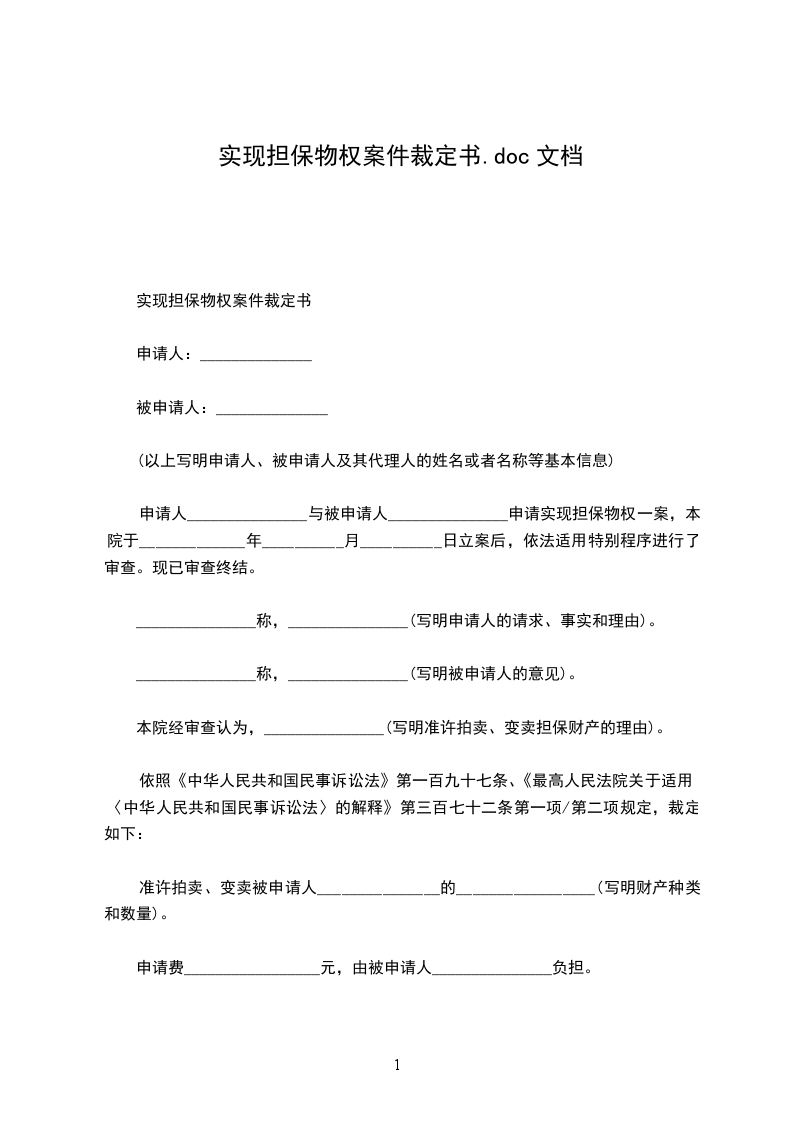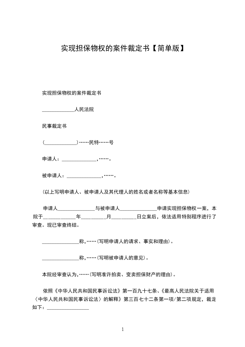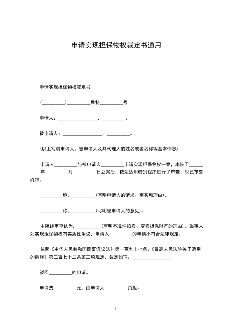 申请人_______________与被申请人_______________申请实现担保物权一案,本院于_____________年__________月__________日立案后,依法适用特别程序进行了审查。现已审查终结。