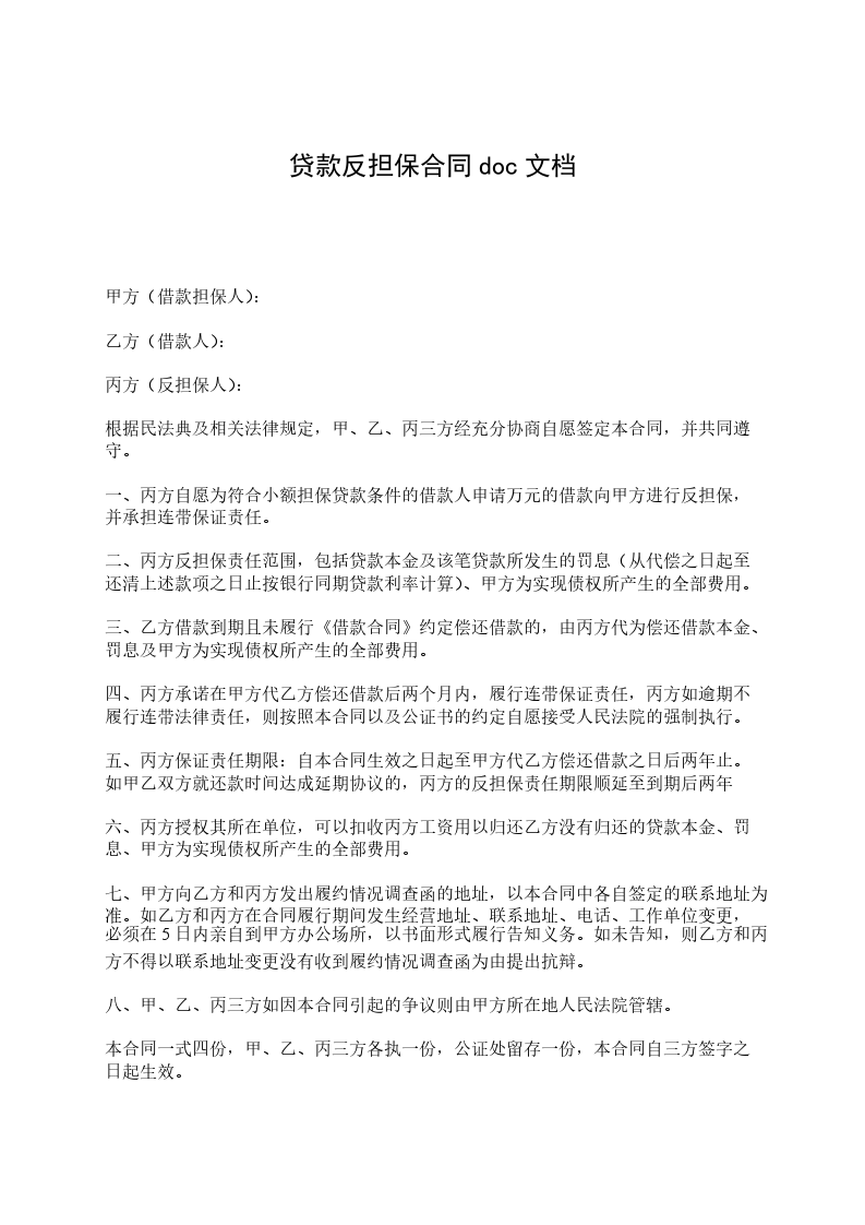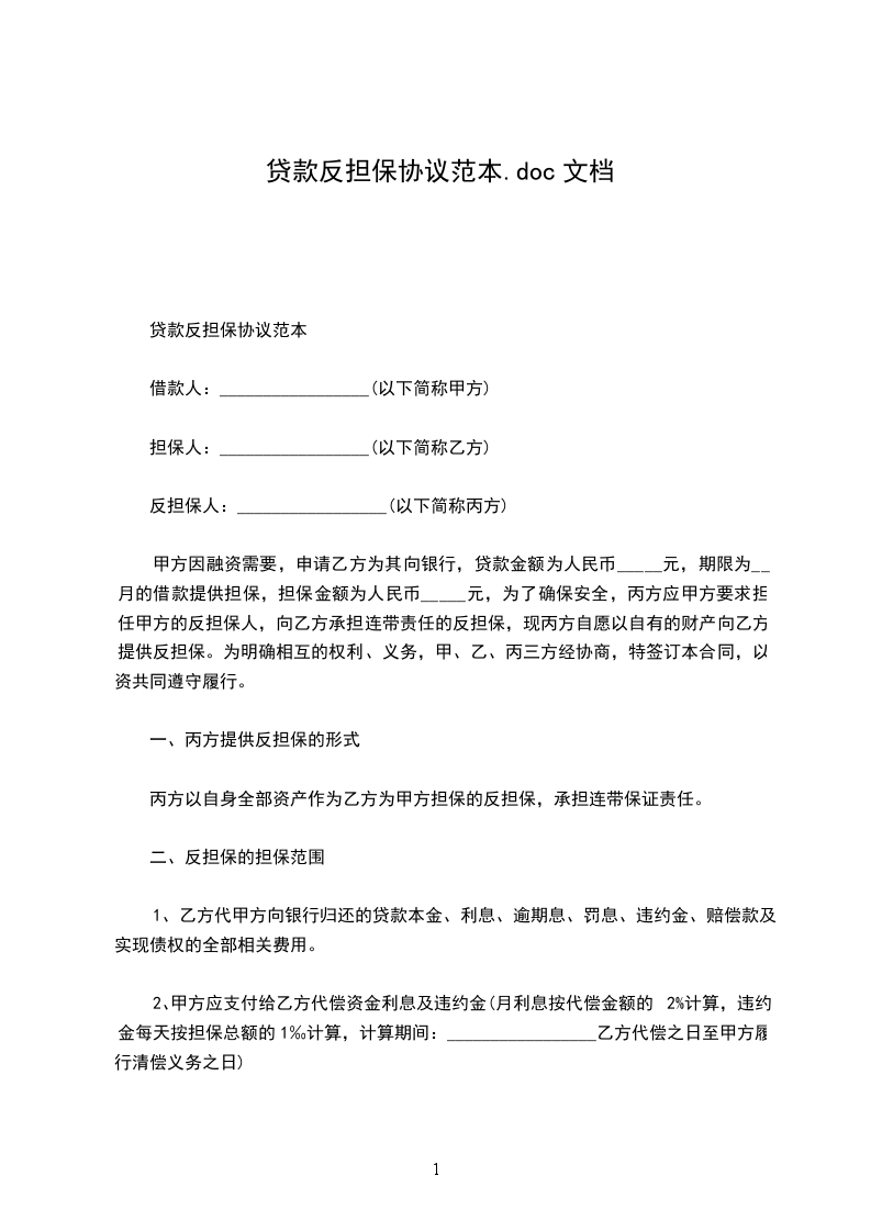 贷款反担保协议书