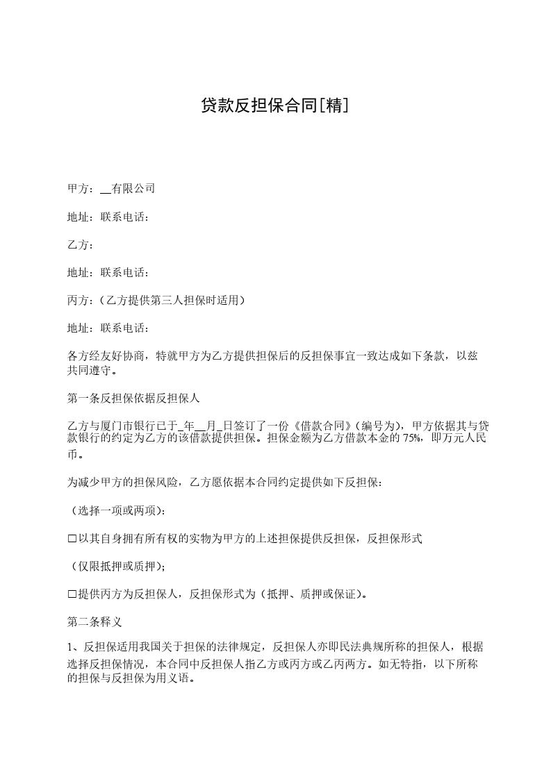 一、丙方提供反担保的形式