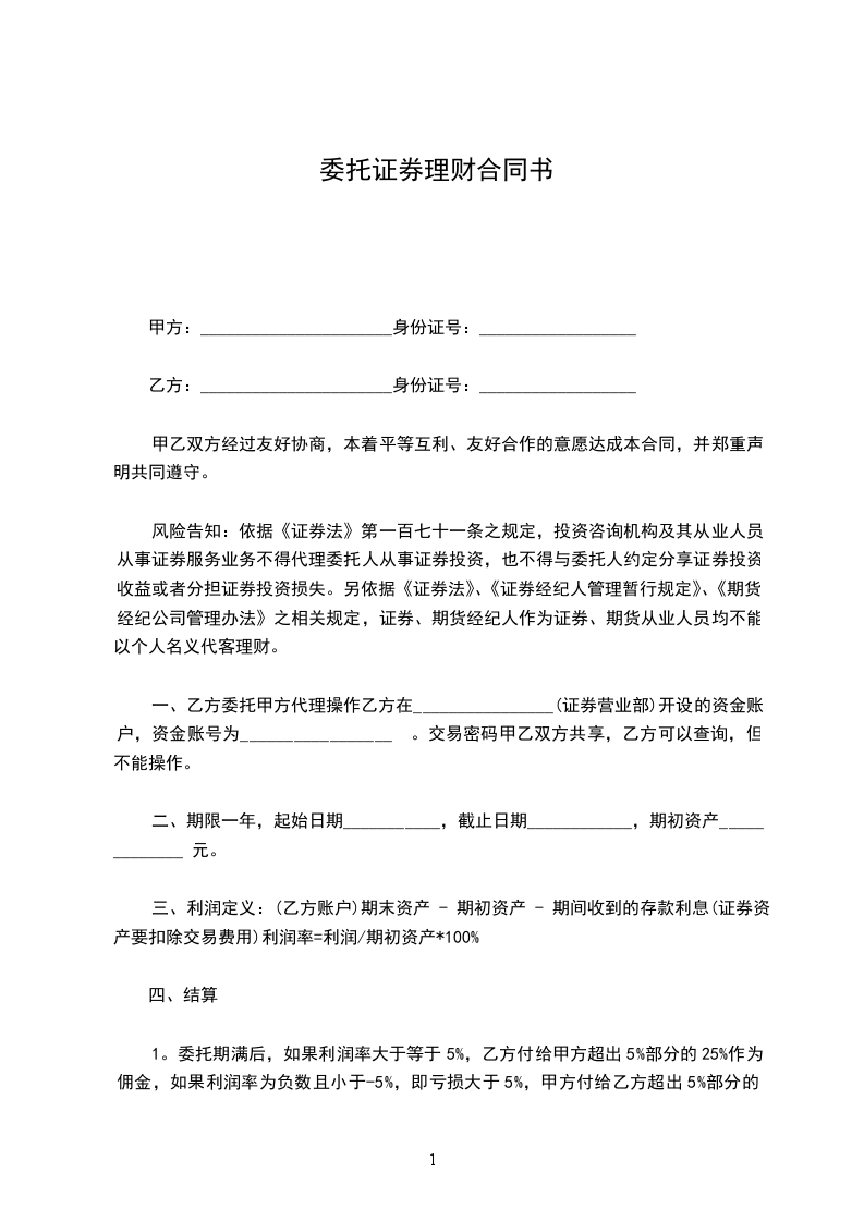 1。委托期满后,如果利润率大于等于5%,乙方付给甲方超出5%部分的25%作为佣金,如果利润率为负数且小于-5%,即亏损大于5%,甲方付给乙方超出5%部分的25%作为赔偿。举例说明,如果资金100万,到期利润10万,乙方应付给甲方(10-5)* 0。25=1。25万元,如果到期亏损10万,甲方应付给乙方(10-5)* 0。25=1。25万元,如果利润在-5万与5万之间,乙方自己承担/享有。