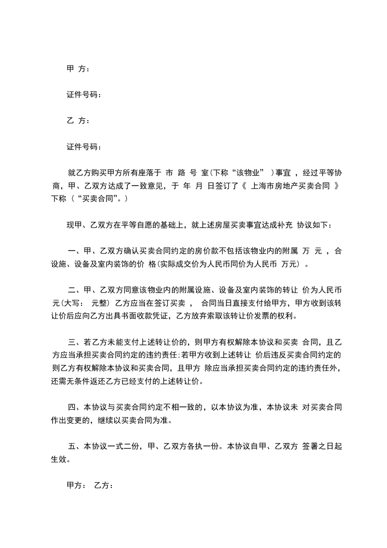 一、协议内容补充修改部分为: