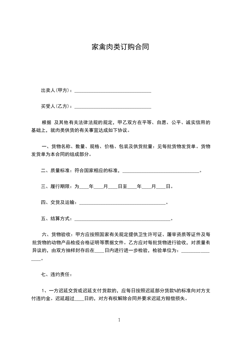 1.养殖人无正当理由,擅自将家禽卖给他人的,应向订购人支付自销金额__________%的违约金;