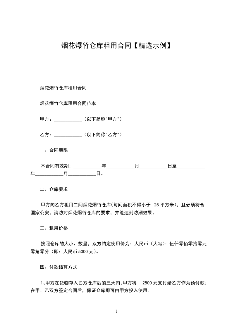 烟花爆竹仓库租用合同