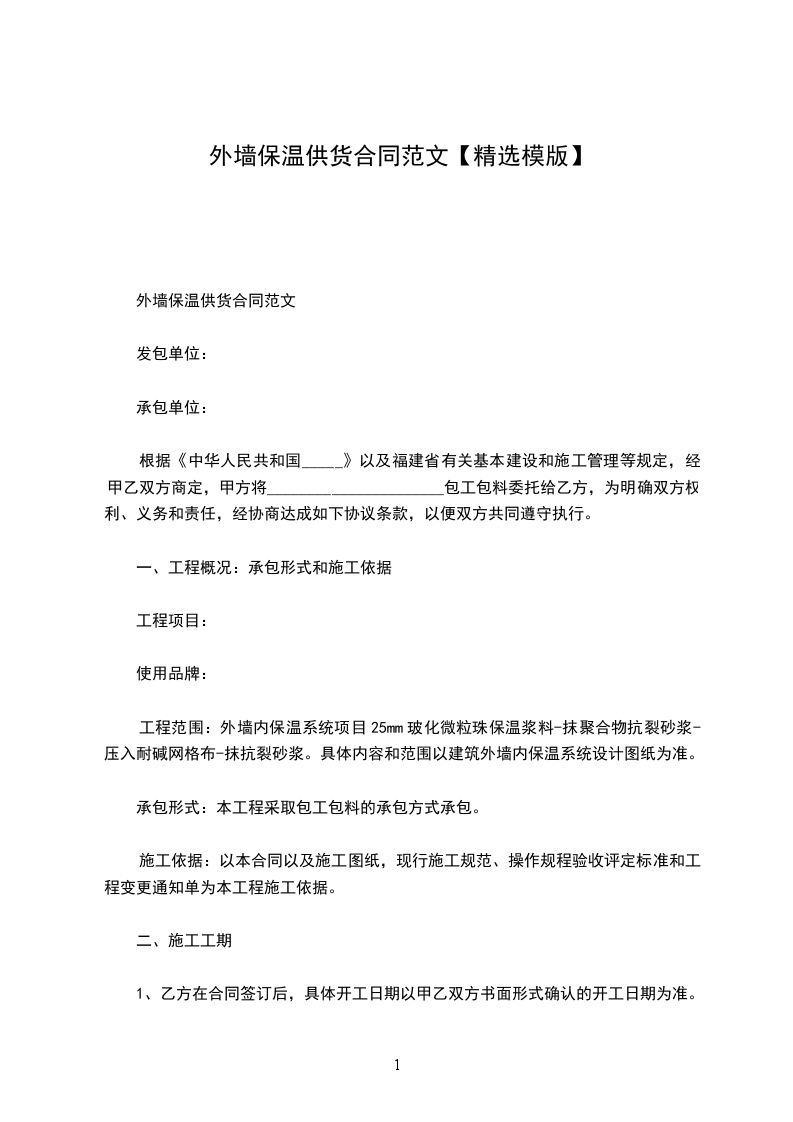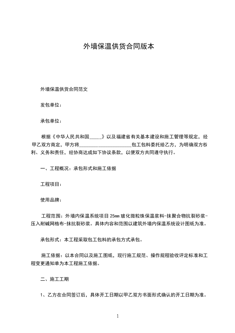 外墙保温供货合同范文
