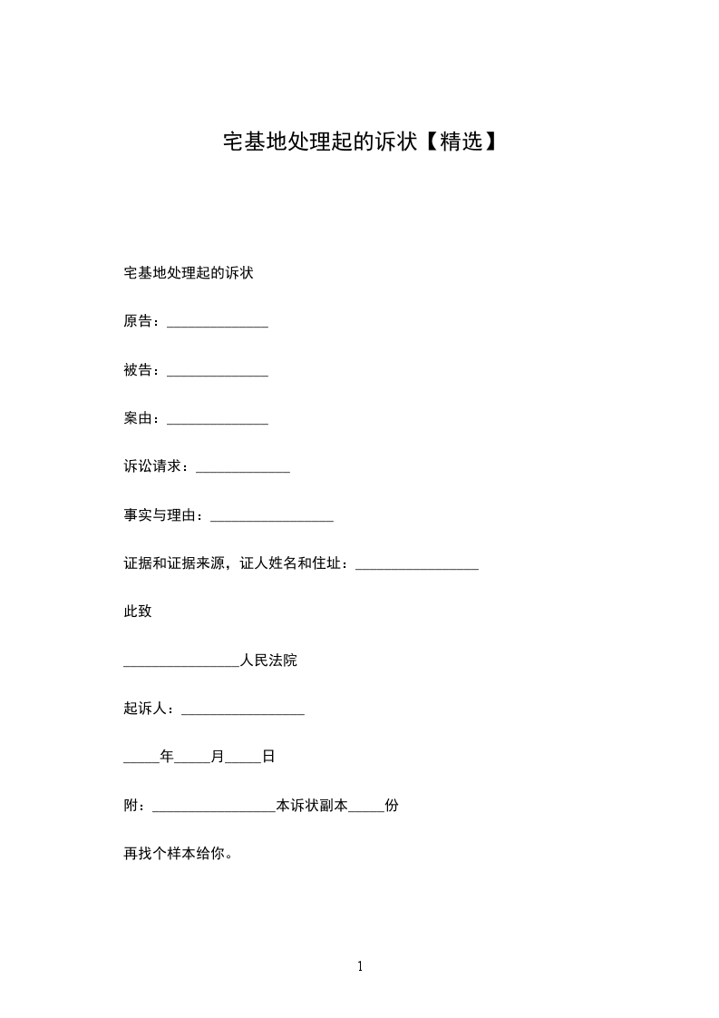 宅基地处理起诉状