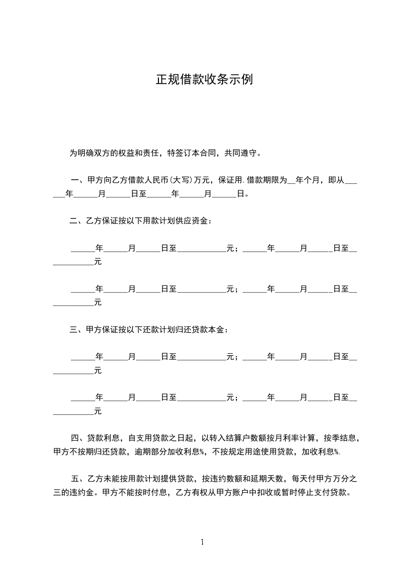 1.甲方向乙方借款人民币(大写)___万元,规定用于