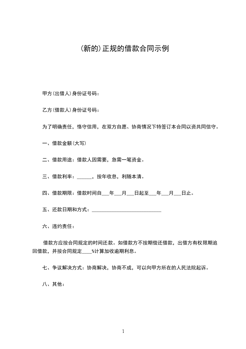 正规个人借款合同20__字范本