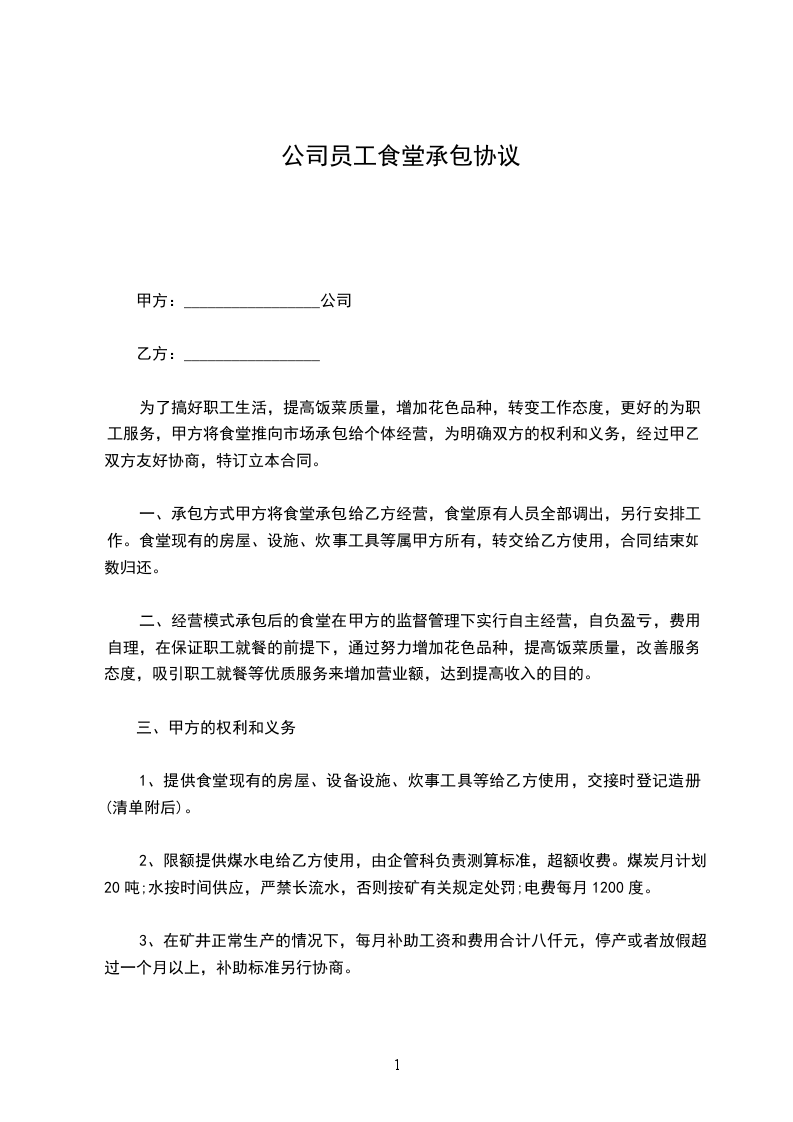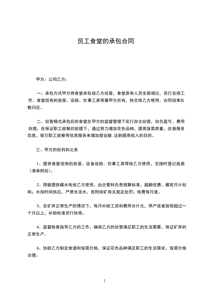 一、承包项目:甲方的员工食堂