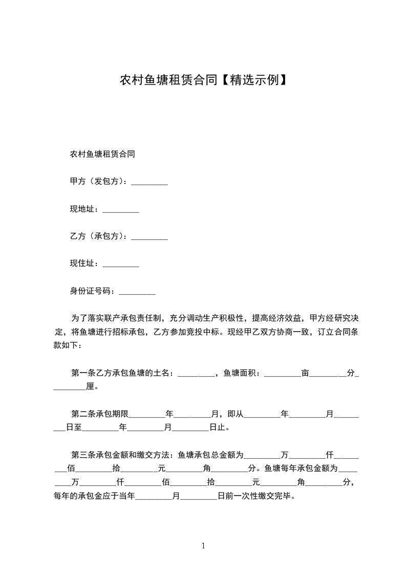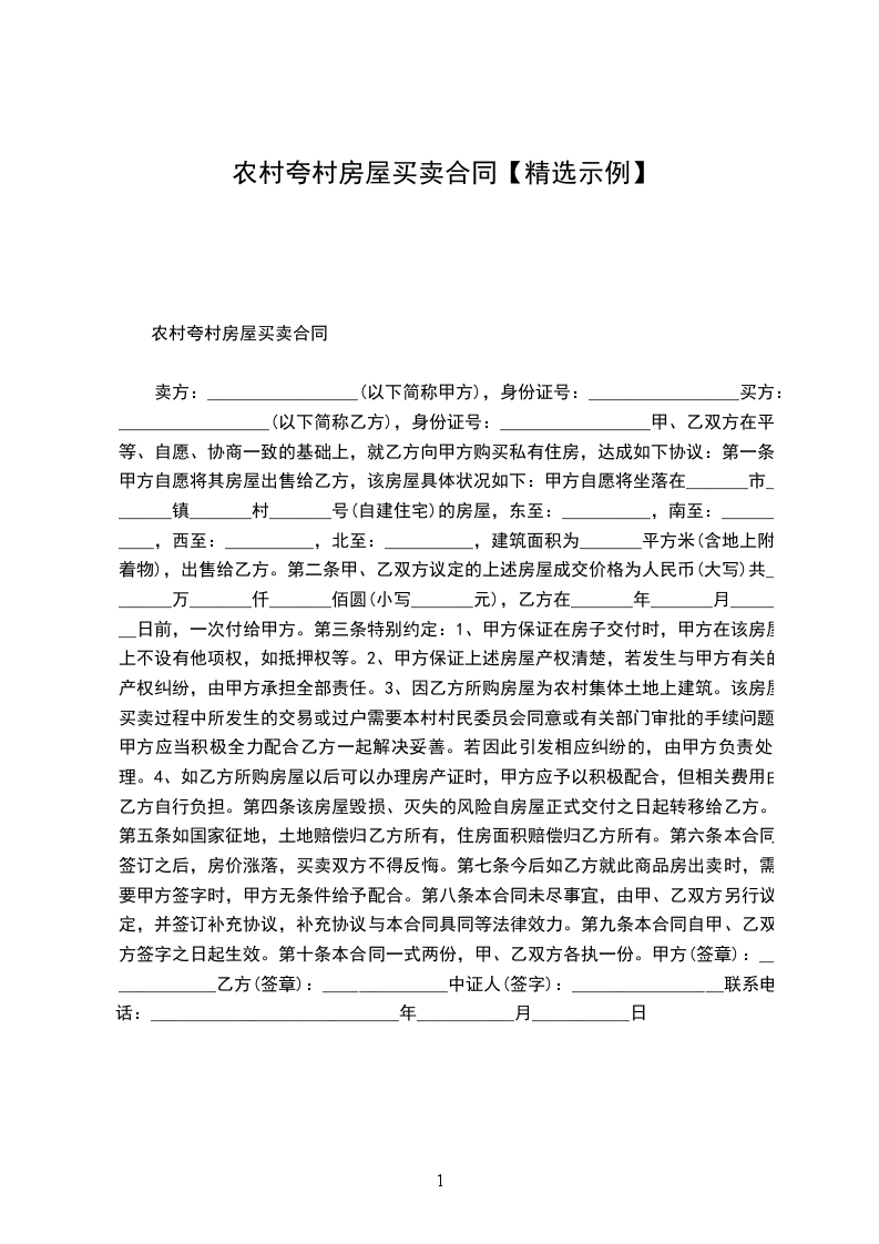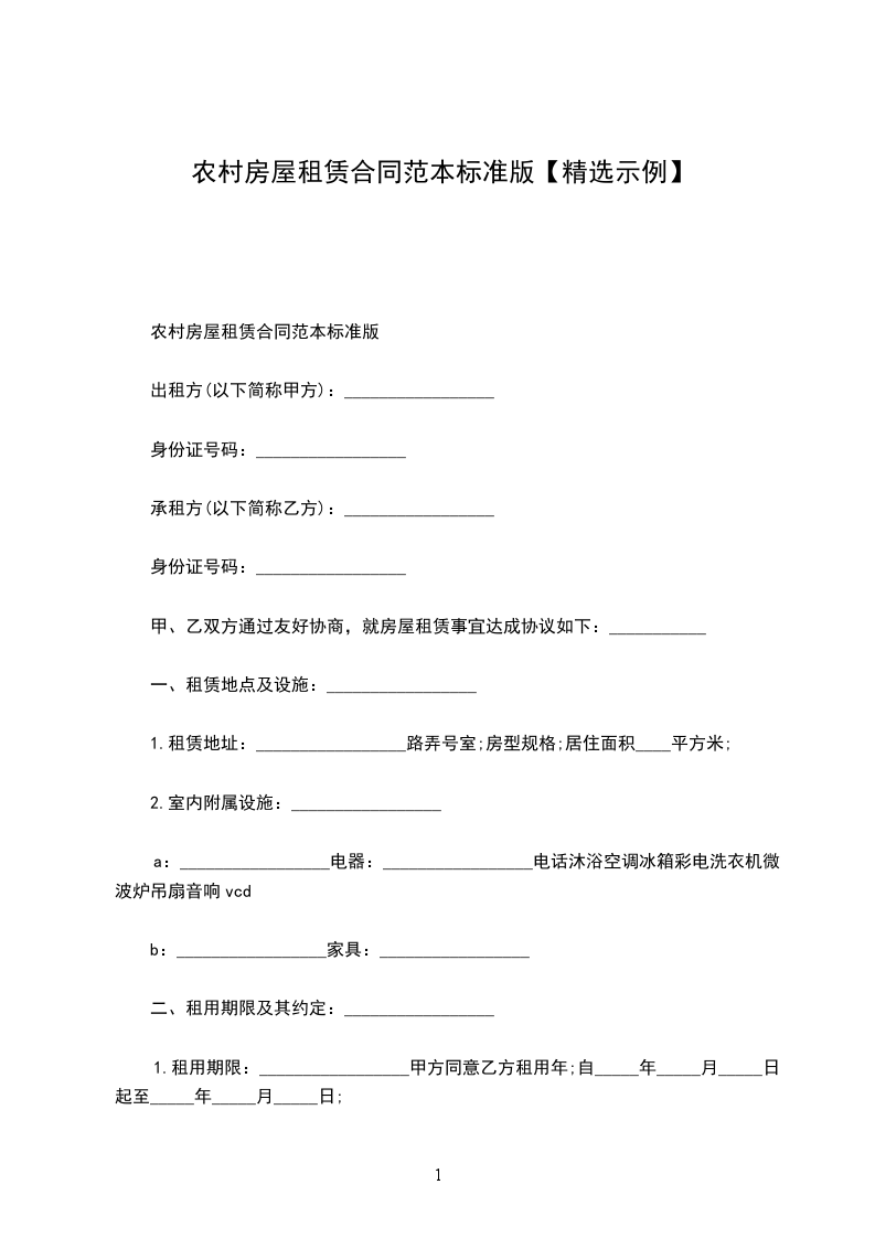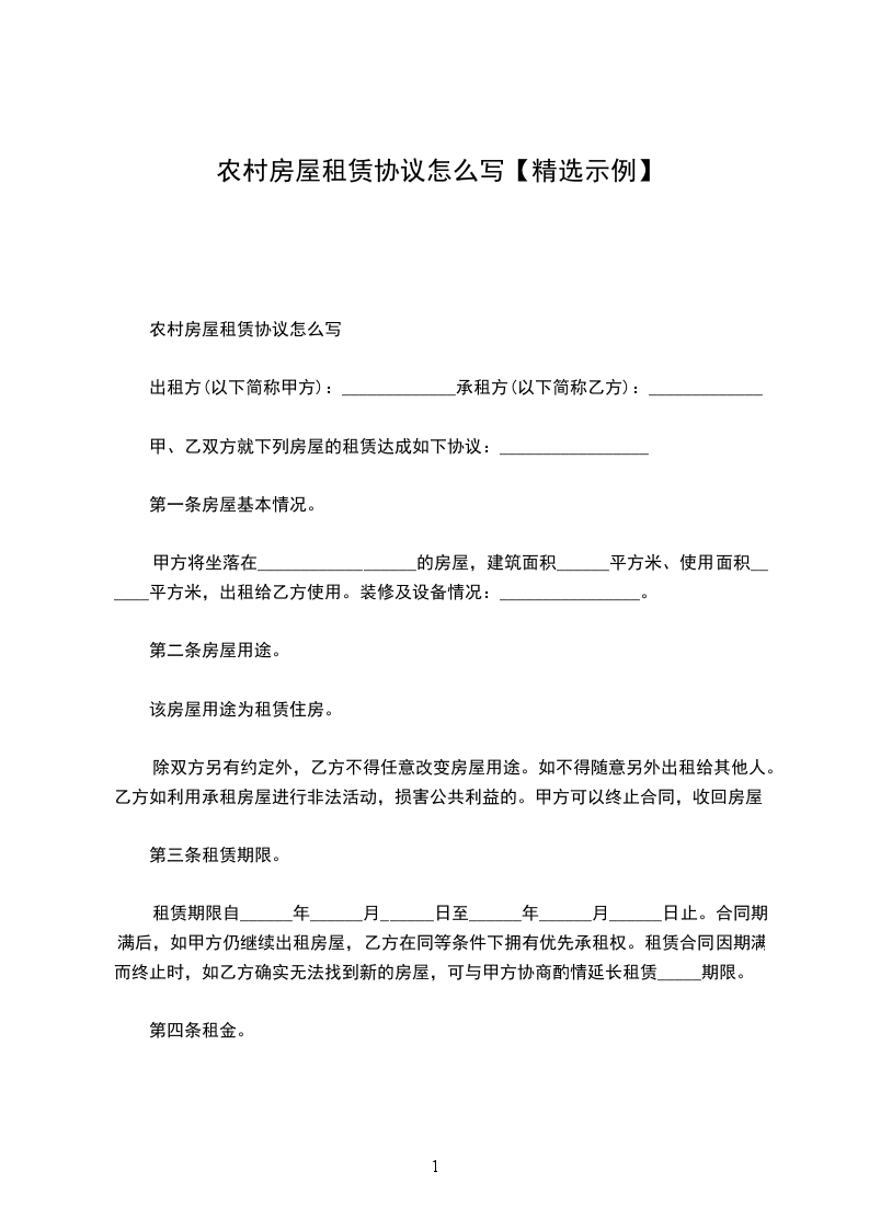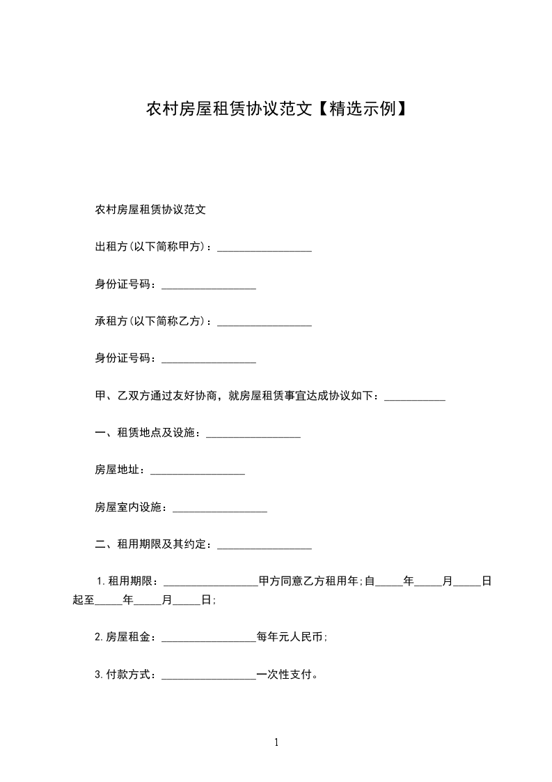 农村房屋租赁协议范文