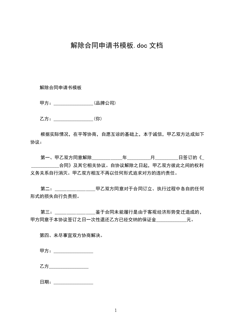 解除合同申请书模板