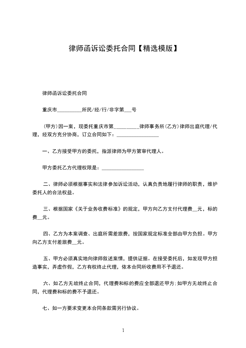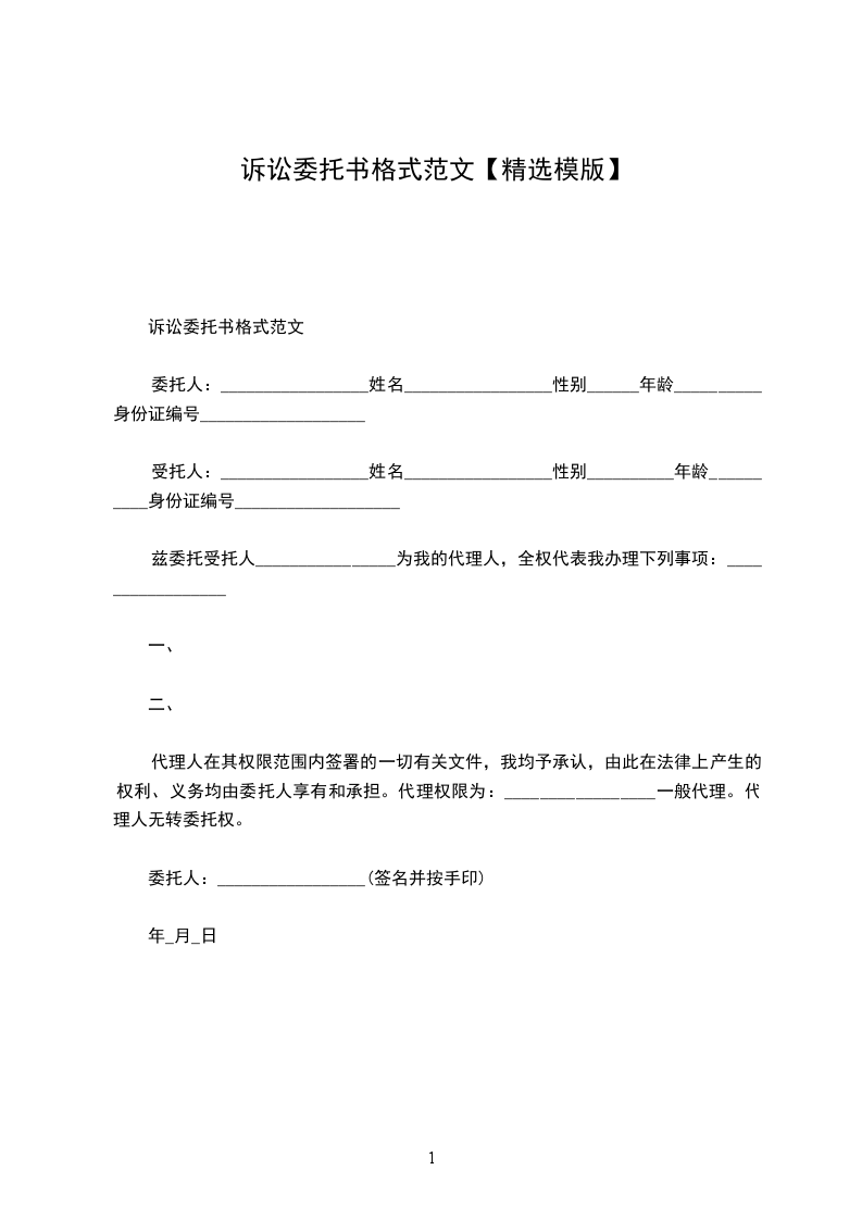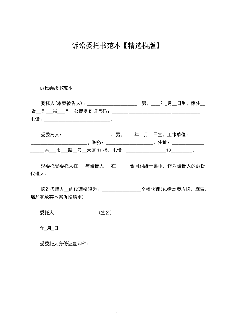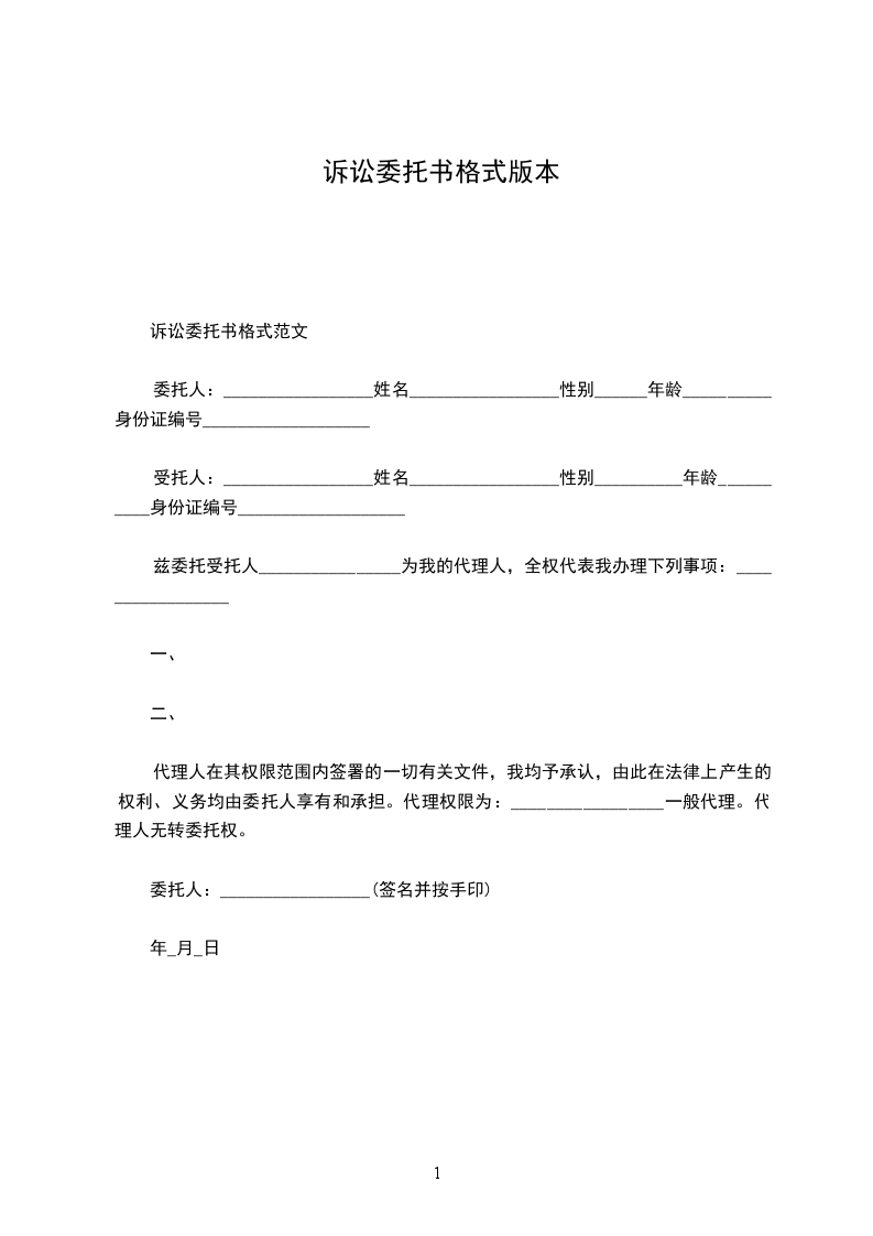诉讼委托书范本