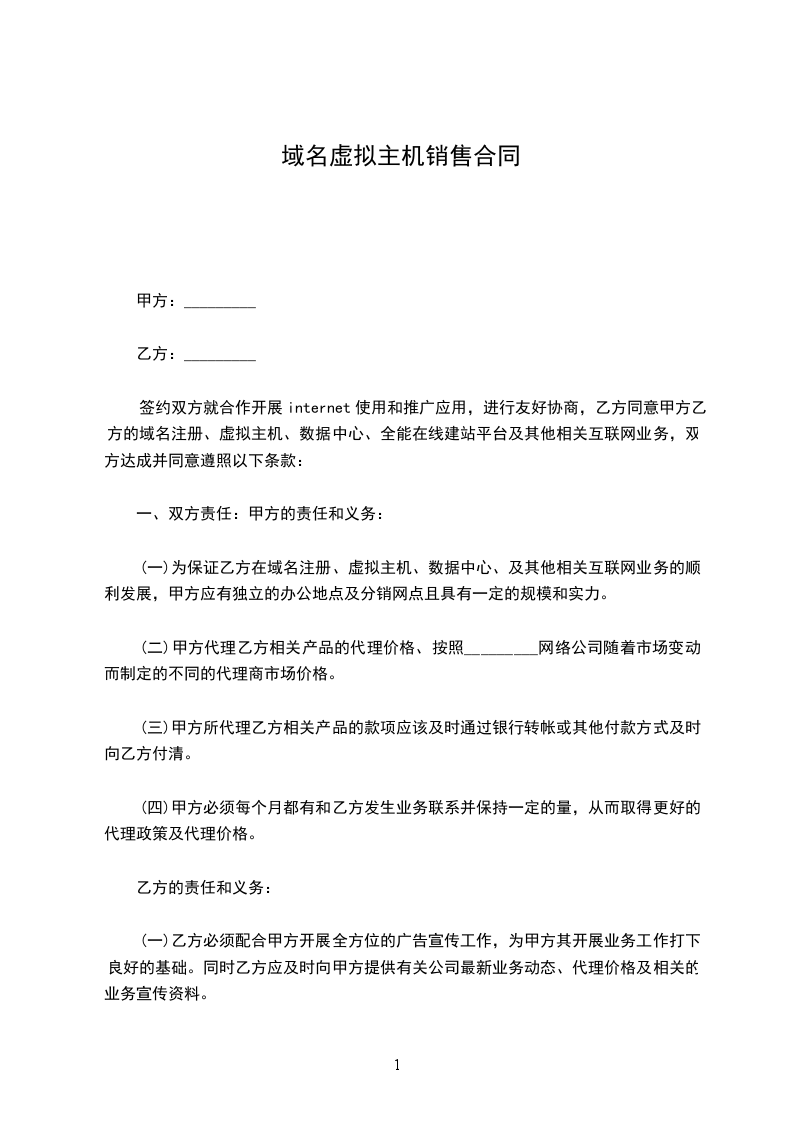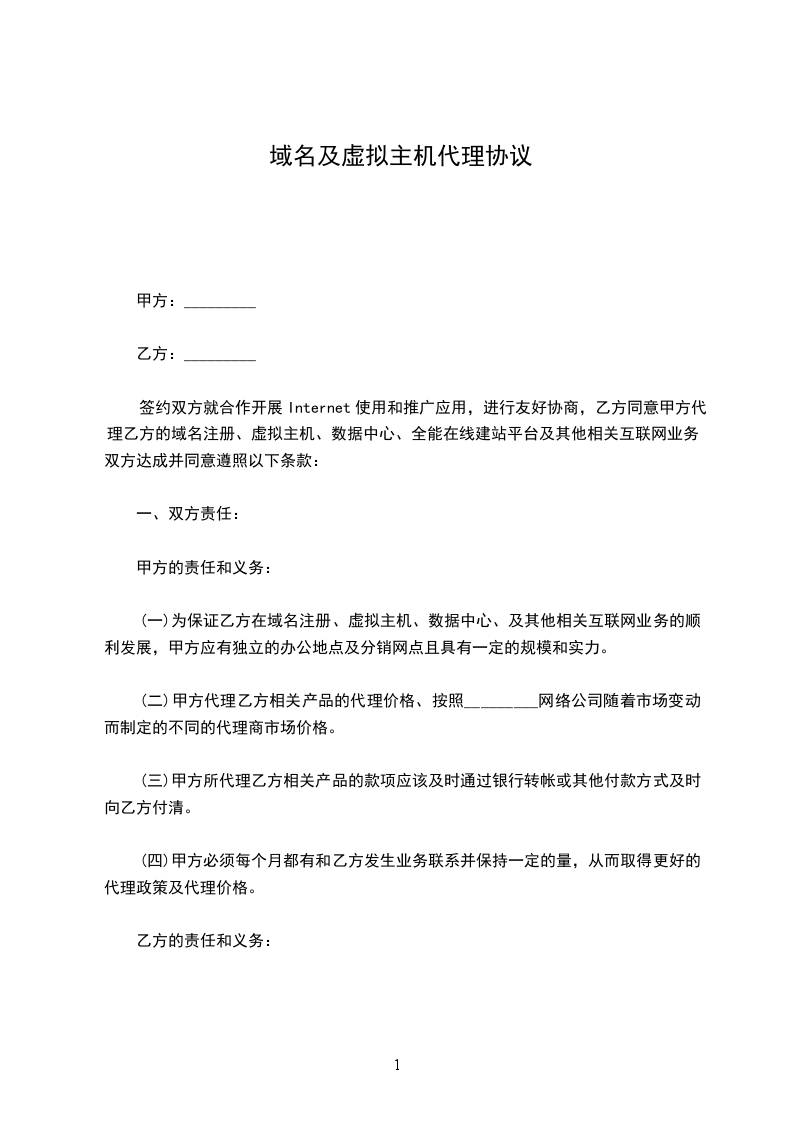 乙方作为提供域名注册及虚拟主机信息平台租用服务的提供商,甲方作为乙方该项业务的代理商,双方本着互惠互利并在遵守国家有关政策和法规的基础上,签定以下合同:
