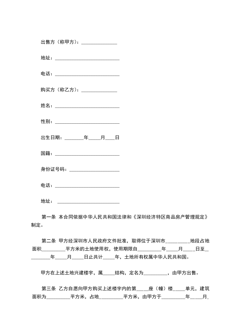 第一条 本合同依据中华人民共和国法律和《深圳经济特区商品房产管理规定》制定。