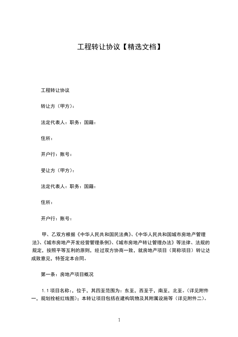 1.1项目名称:,位于,其四至范围为:东至,西至于,南至,北至。(详见附件一,规划拴桩红线图);本转让项目包括在建构筑物及其附属设施等(详见附件二)。