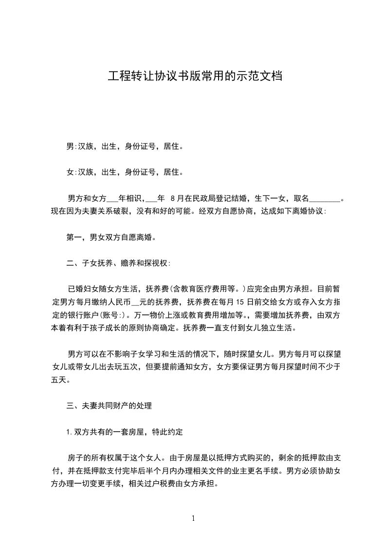 6.1甲方向乙方转让该项目尚需完成工程(依实际情况约定,如6.1.1):