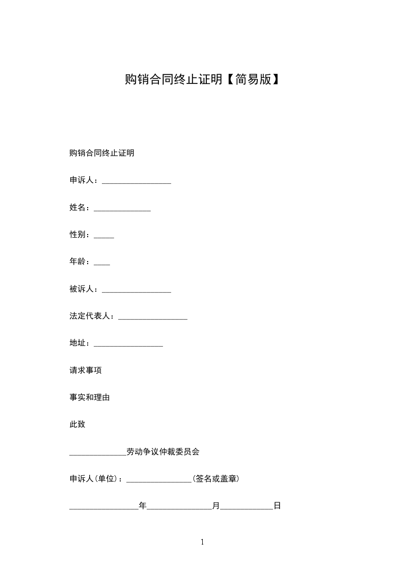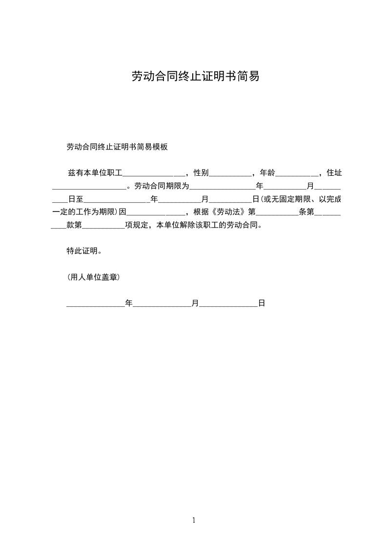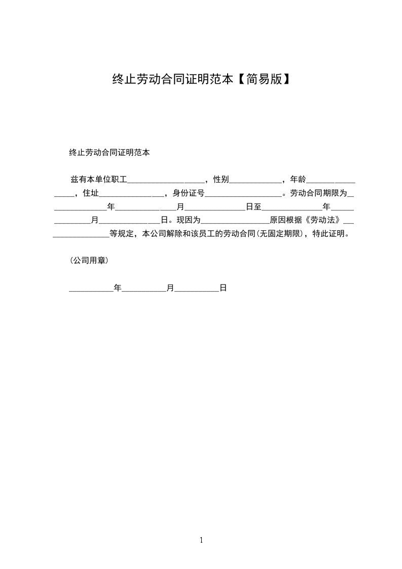 劳动合同终止协议证明书范文