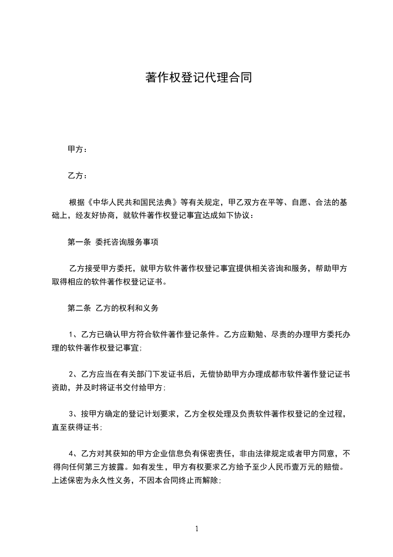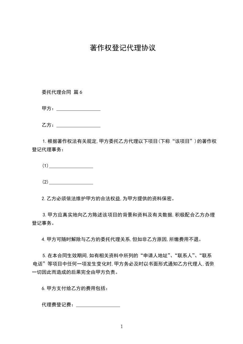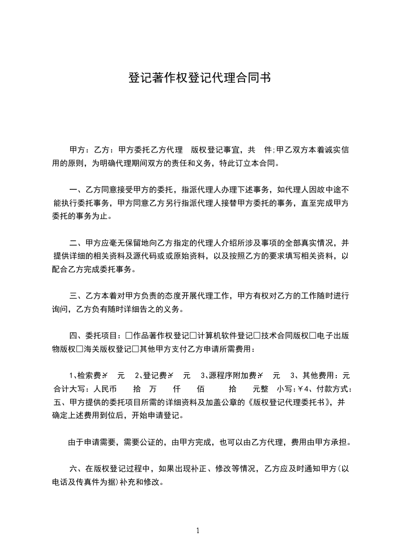 1.根据著作权法有关规定,甲方委托乙方代理以下项目(下称“该项目”)的著作权登记代理事务:_________________