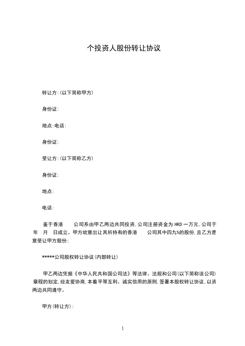 鉴于公司股东会也同意由乙方受让甲方在该公司拥有的%股权。