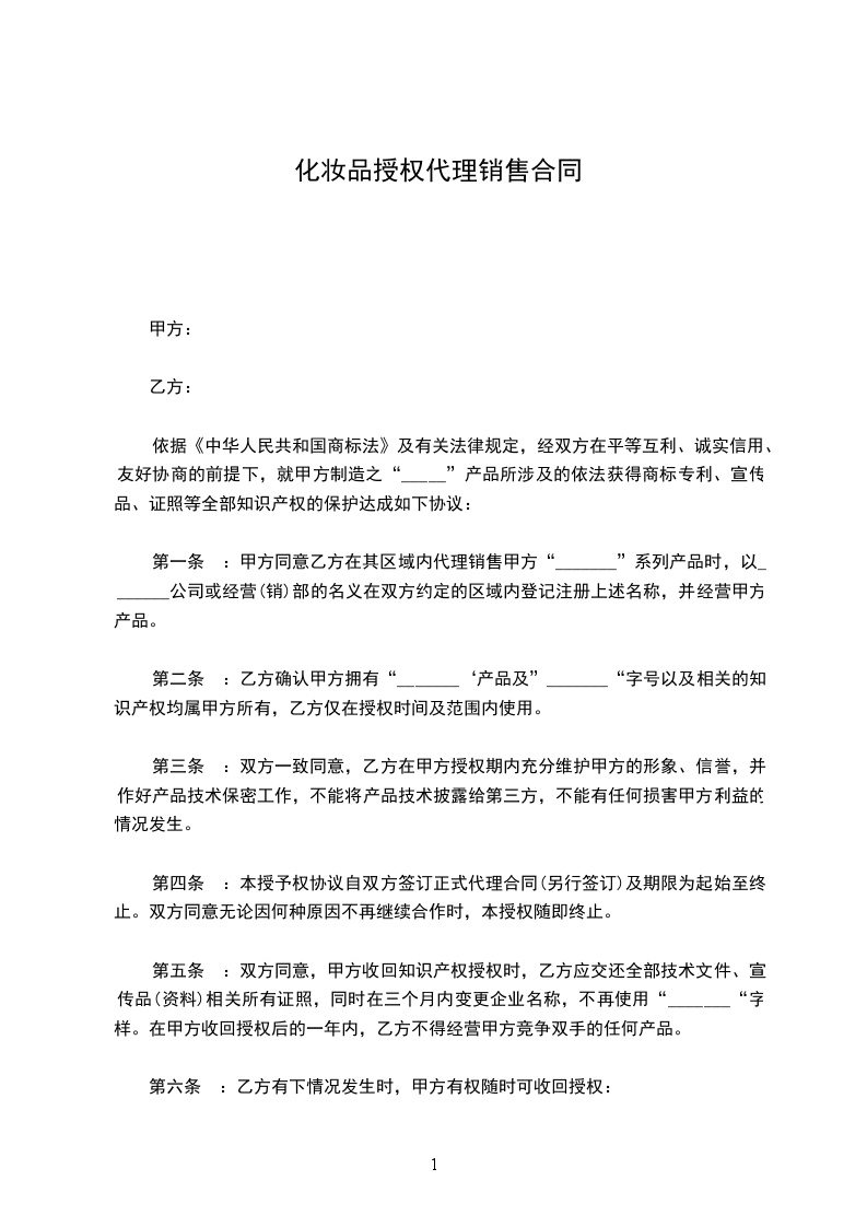 1。甲方在委托乙方特约经销期间,提供给甲方有关的企业合法生产经营的证照复印件、特约经销牌匾和授权委托书;乙方应遵守经销原则,只允许在(省、市、县)所辖的范围内代理经销,不得在其它非辖区内转让和销售;甲方同样不出售“_____________”商品给乙方所在总经销辖区内的其他经销商。