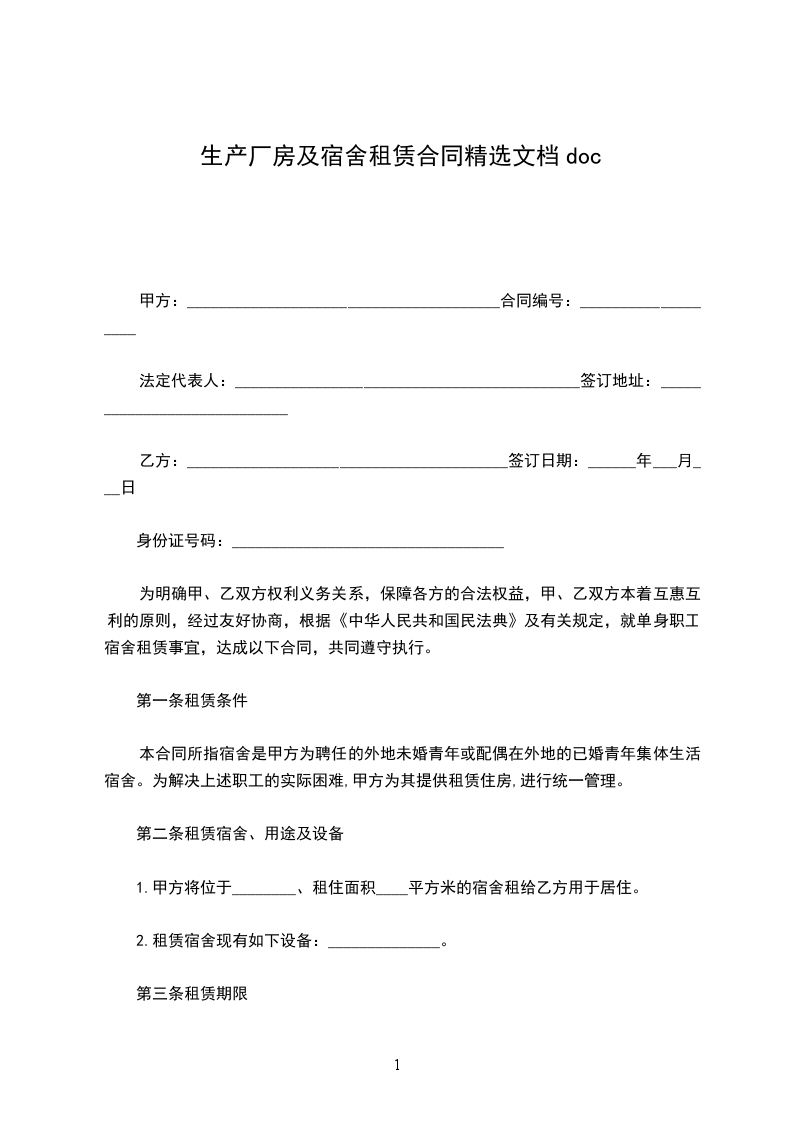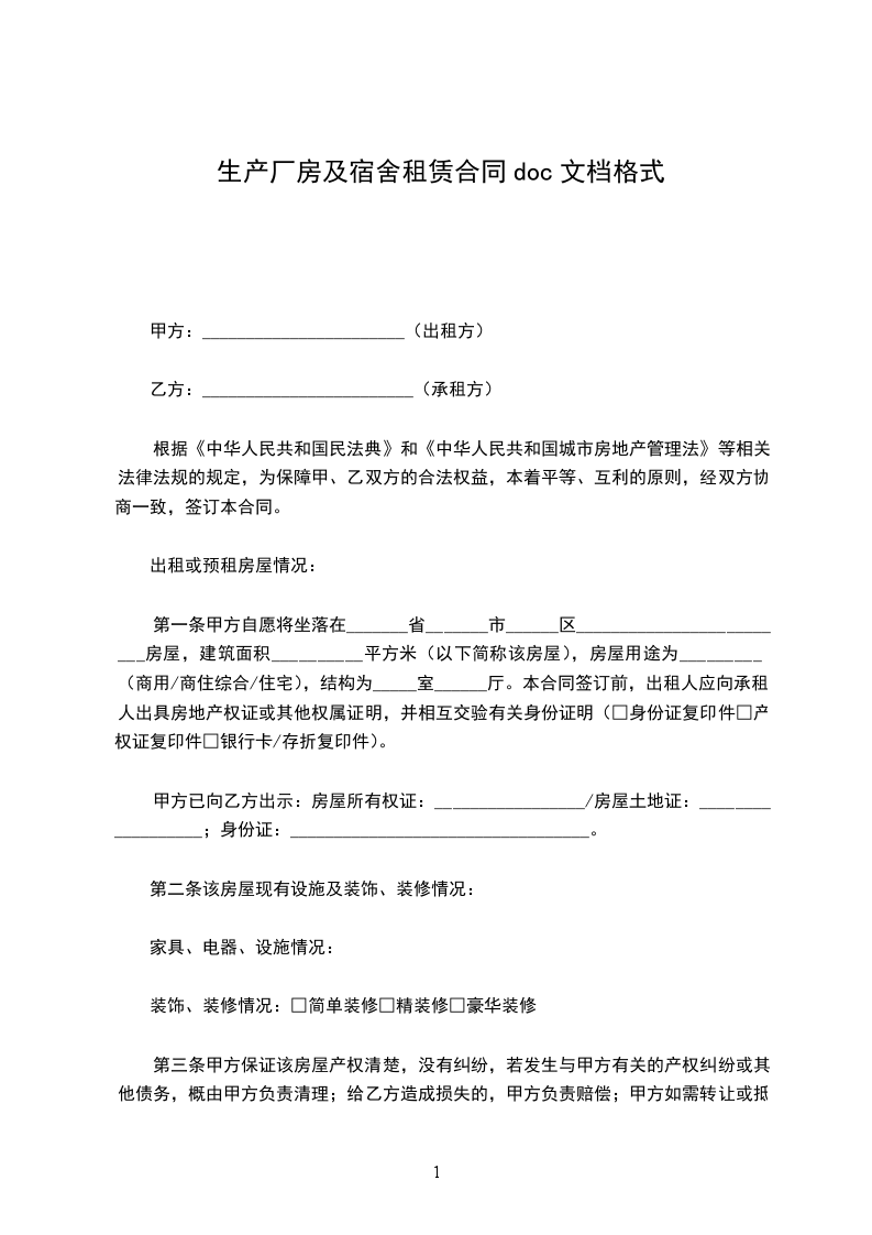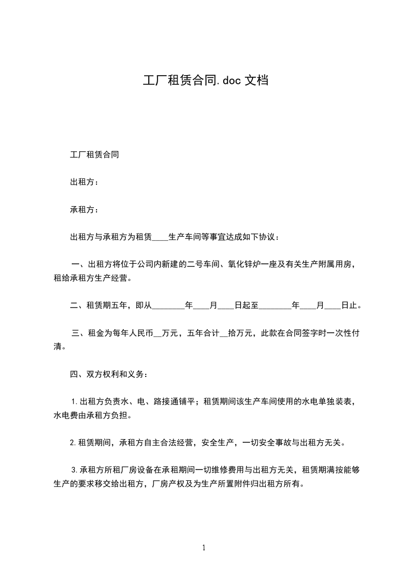 生产厂房租赁合同