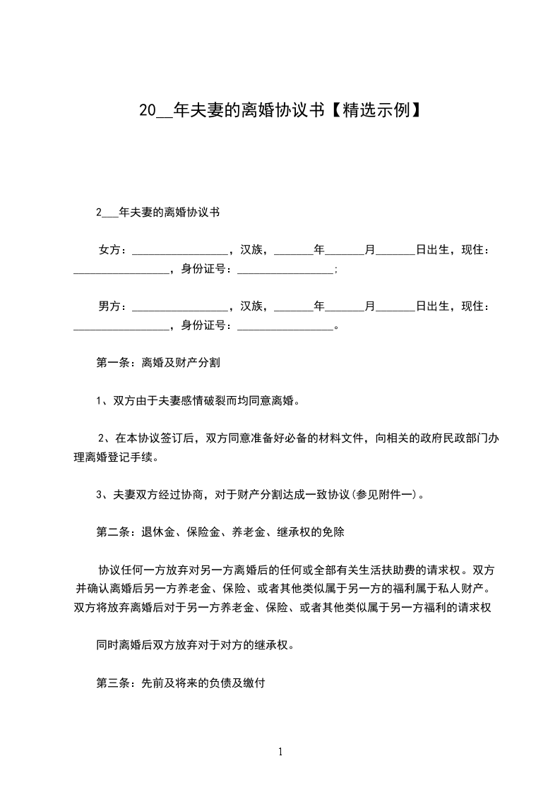 第一条:离婚及财产分割