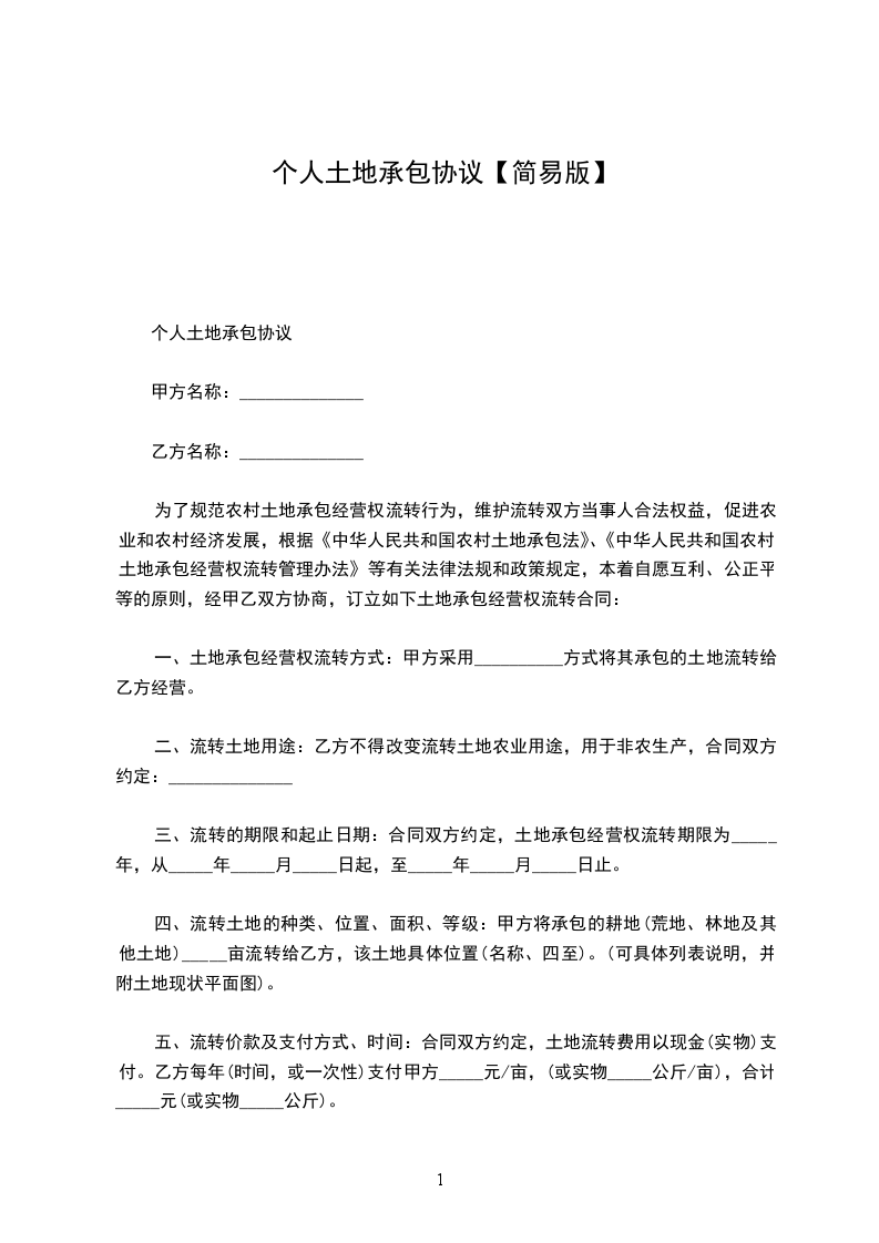 甲方将______县______乡______村所属土地约______亩的土地出租给乙方使用(租地面积以实际丈量为准)。
