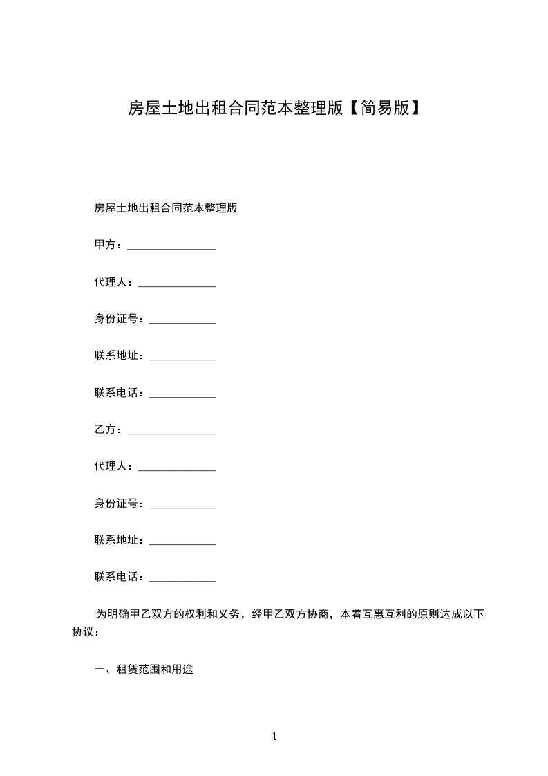 房屋土地出租合同范本整理版