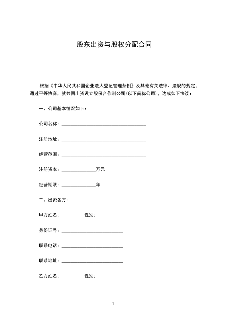 根据《中华人民共和国企业法人登记管理条例》及其他有关法律、法规的规定,通过平等协商,就共同出资设立股份合作制公司(以下简称公司),达成如下协议: