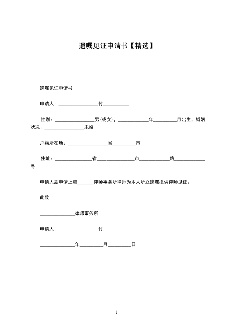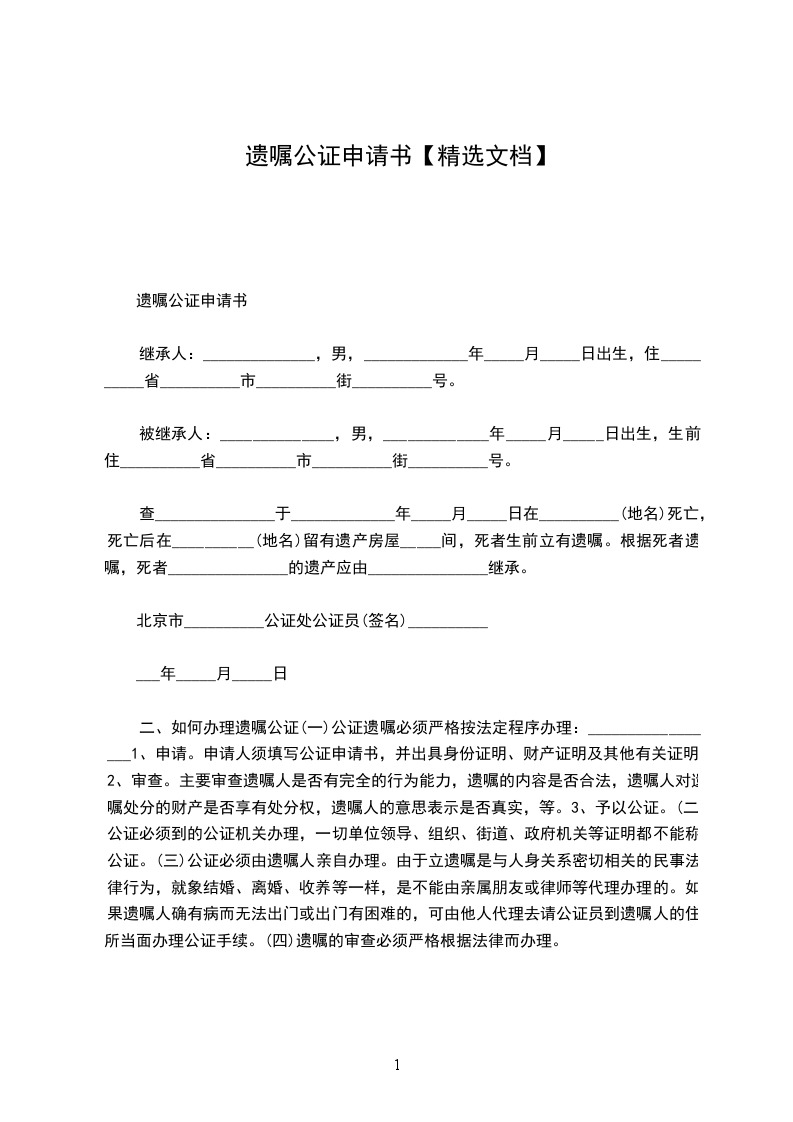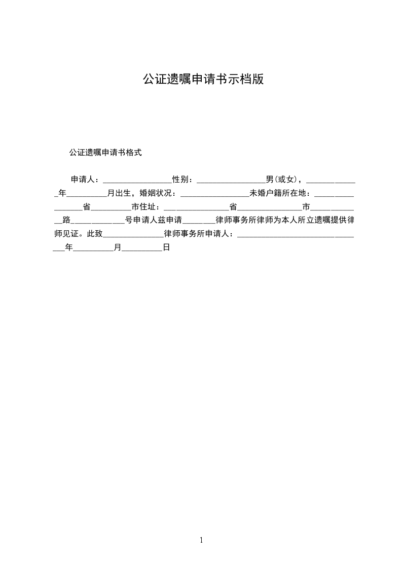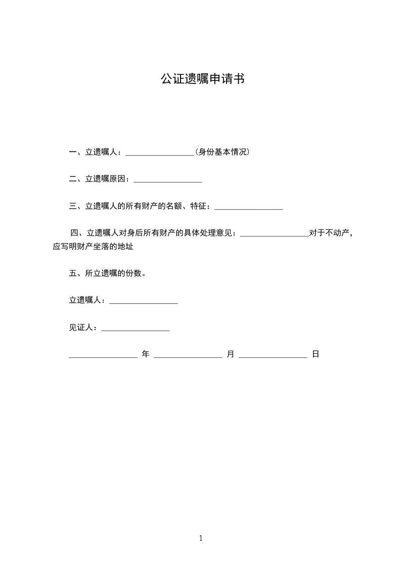 遗嘱公证申请书范文