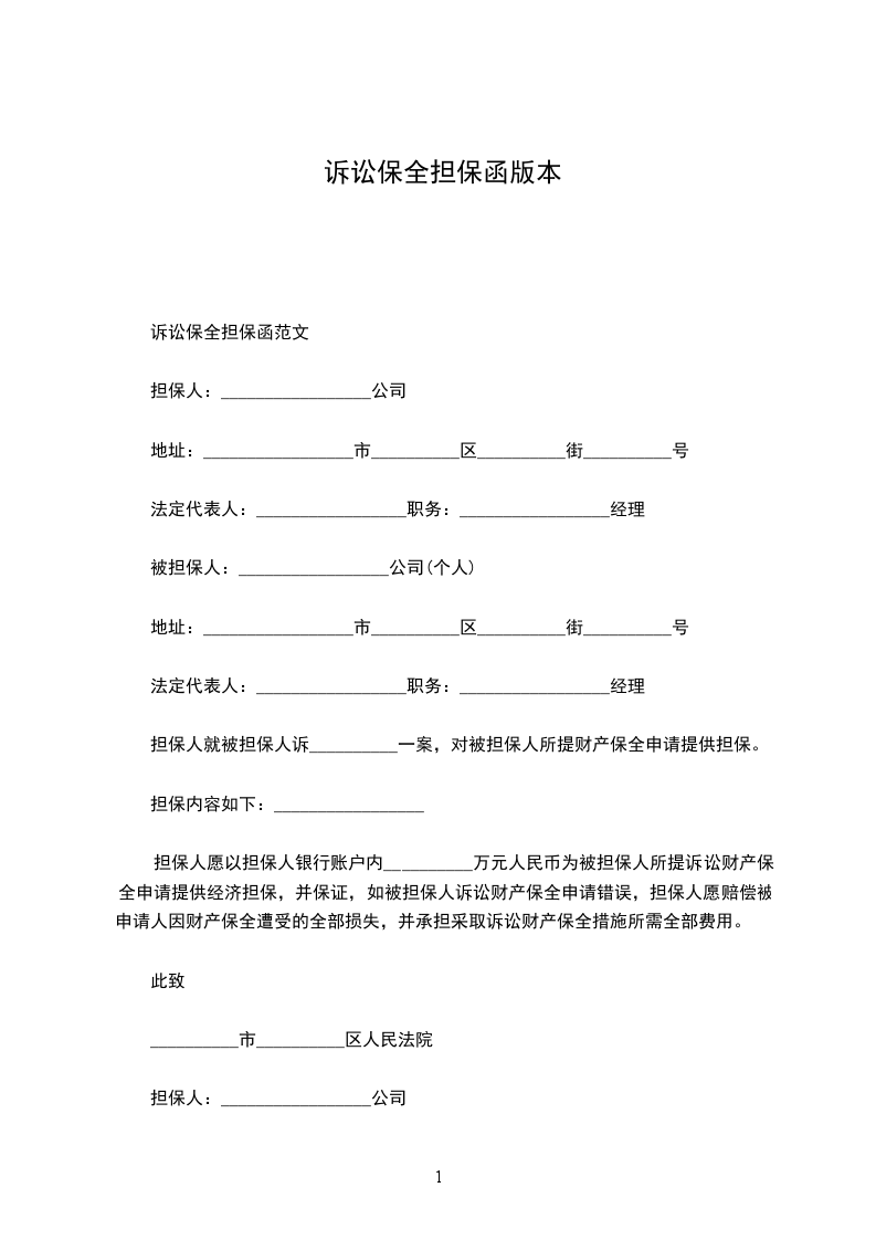 诉讼保全担保函范文
