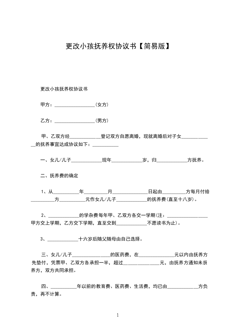 更改小孩抚养权协议书