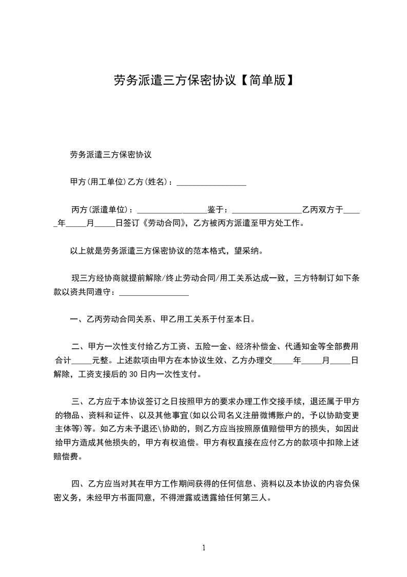 以上就是劳务派遣三方保密协议的范本格式,望采纳。