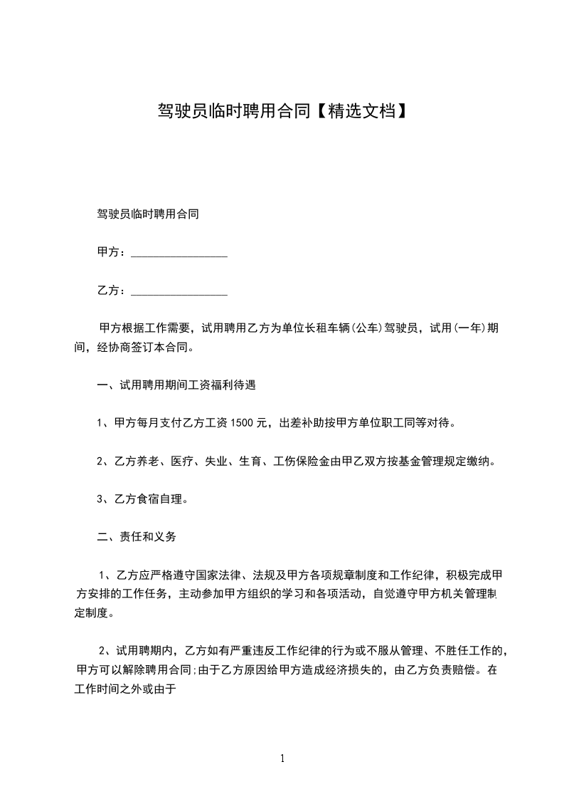 驾驶员临时聘用合同