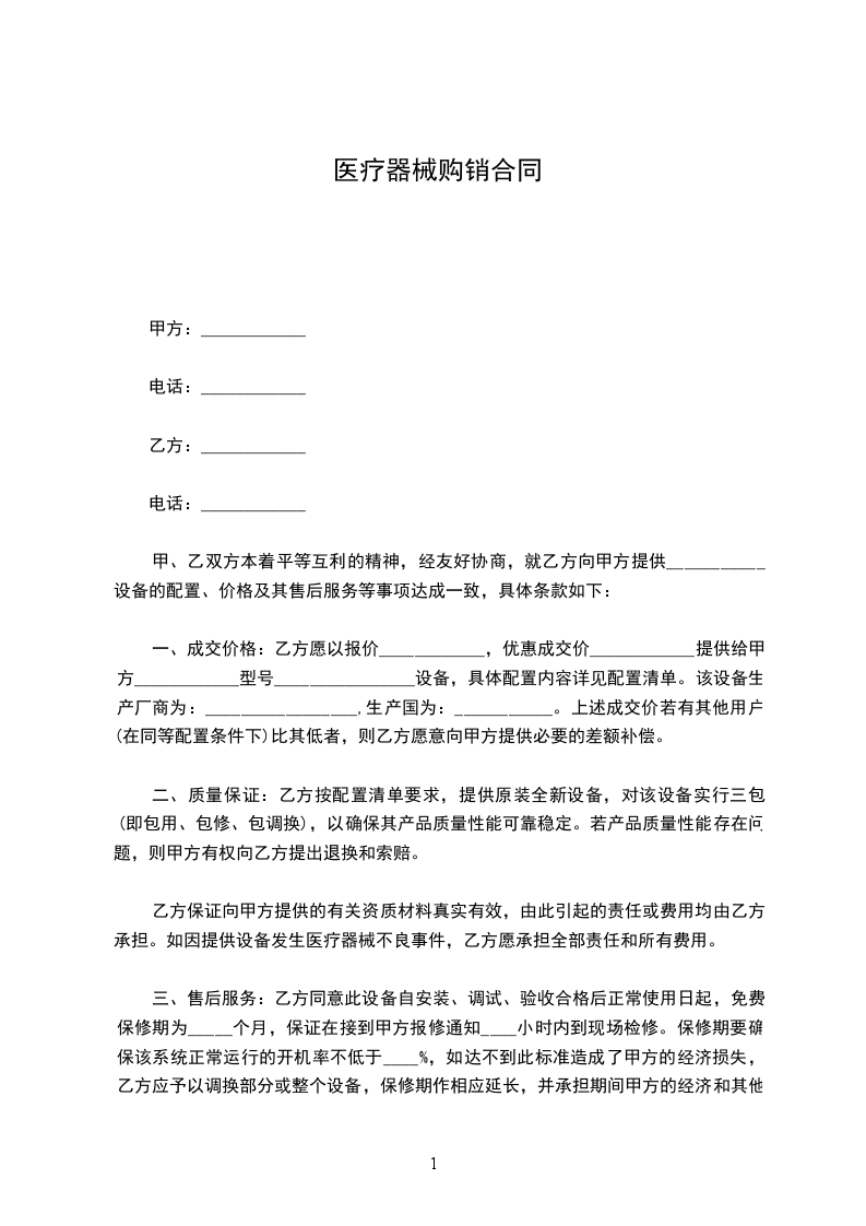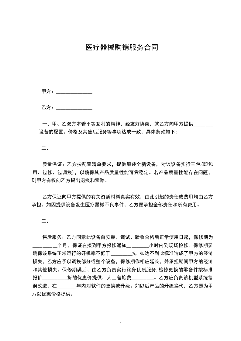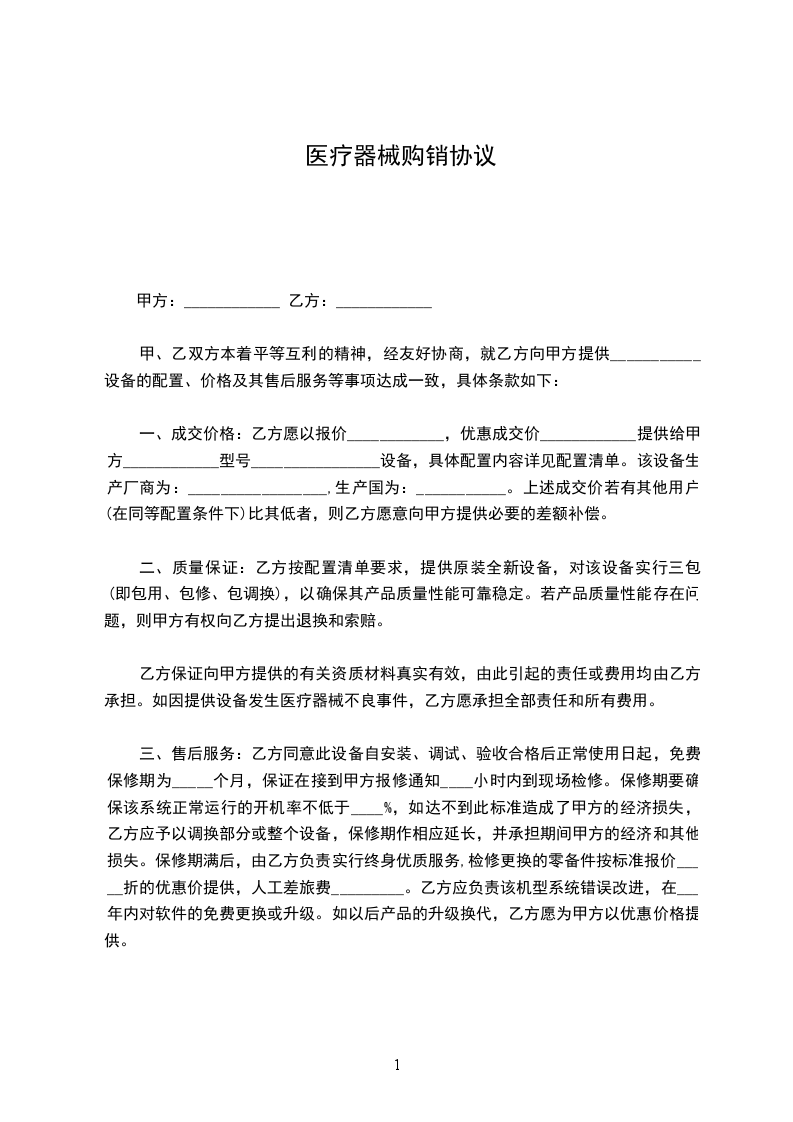 一、甲、乙双方本着平等互利的精神,经友好协商,就乙方向甲方提供___________设备的配置、价格及其售后服务等事项达成一致,具体条款如下: