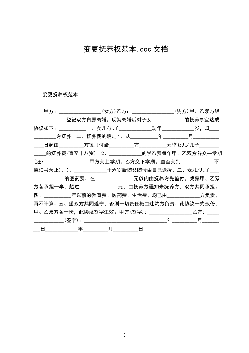双方在平等、自愿的基础上,经过充分的协商,现就双方离婚后变更子女抚养权等相关事宜达成协议如下: