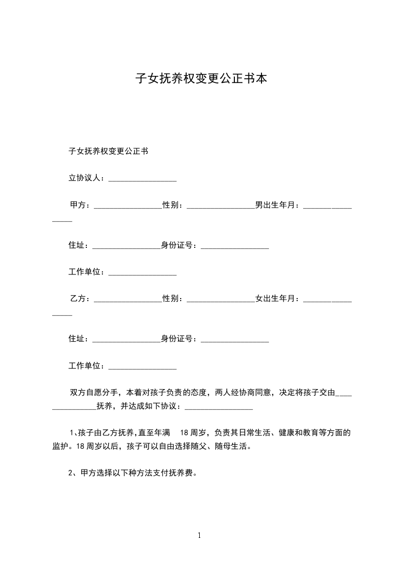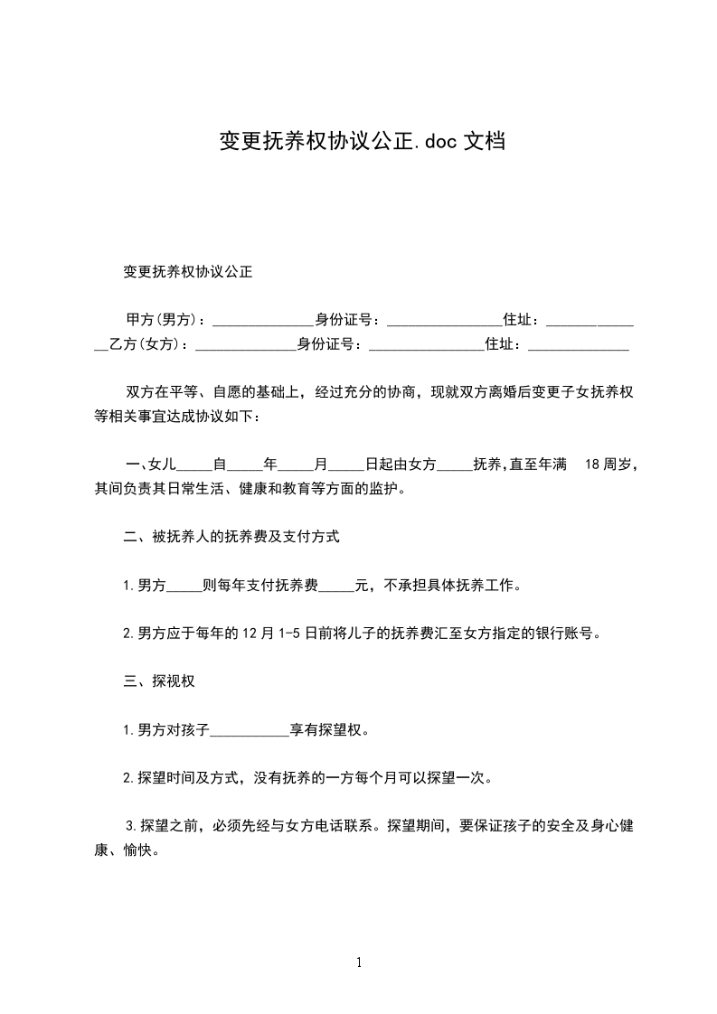 变更抚养权协议公正
