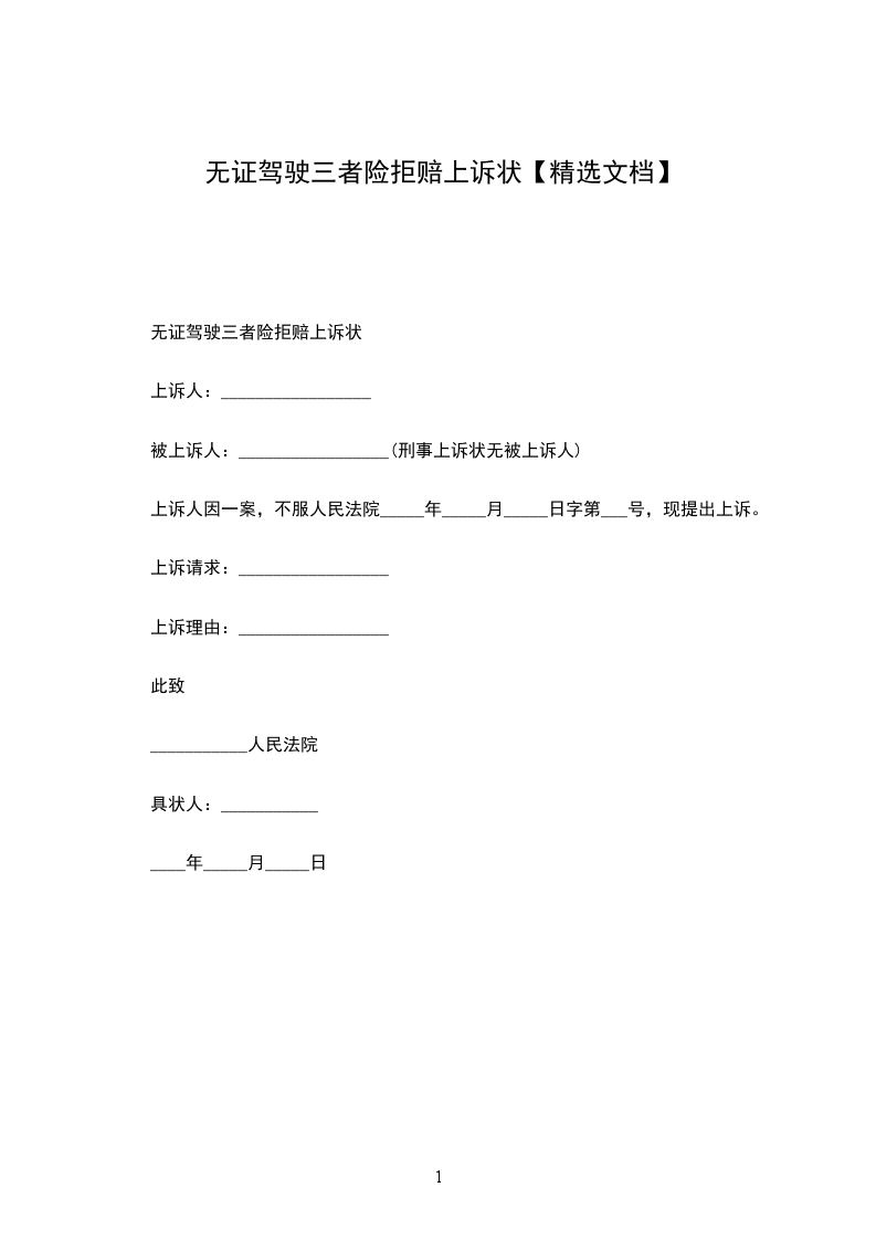 无证驾驶三者险拒赔上诉状
