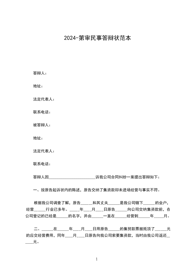 答辩人:_________________住址:_________________