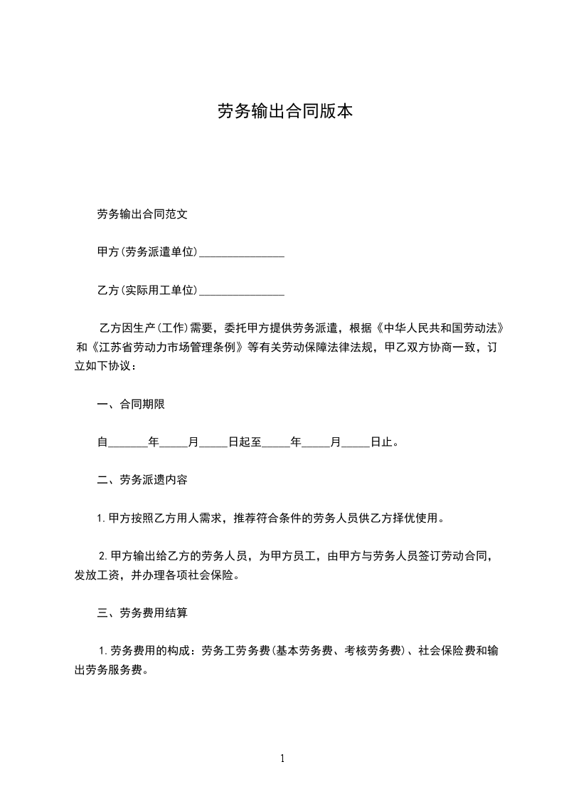 劳务输出合同范文