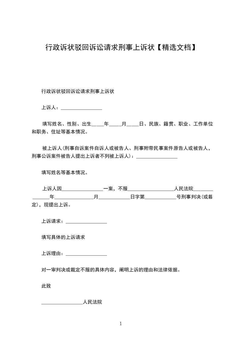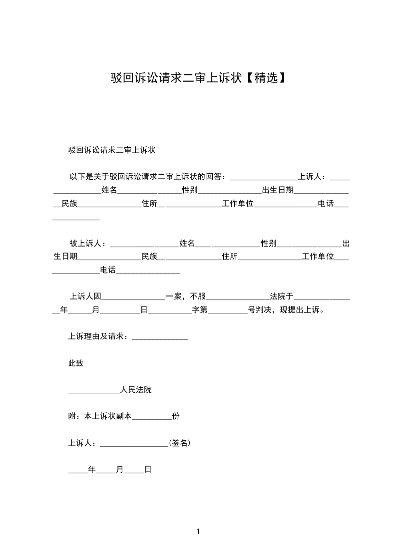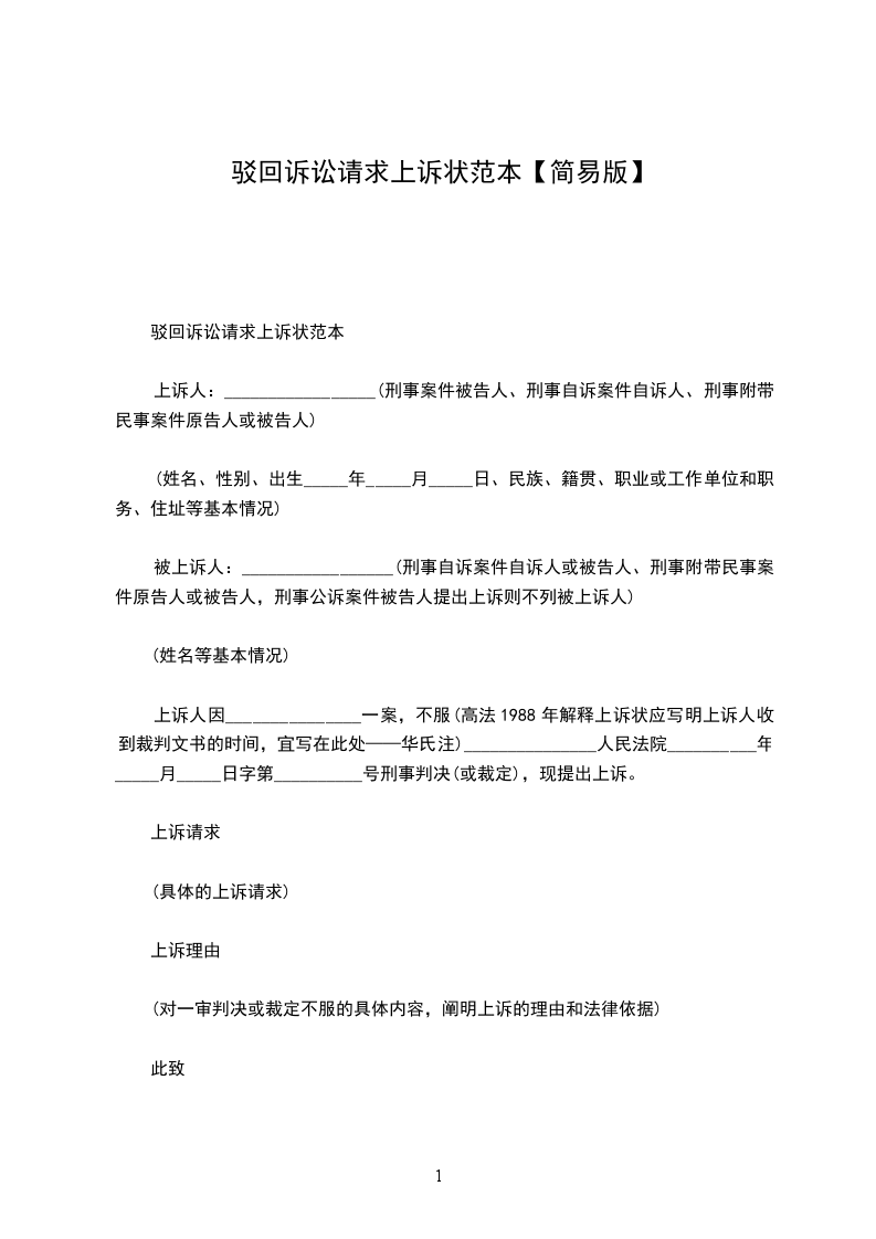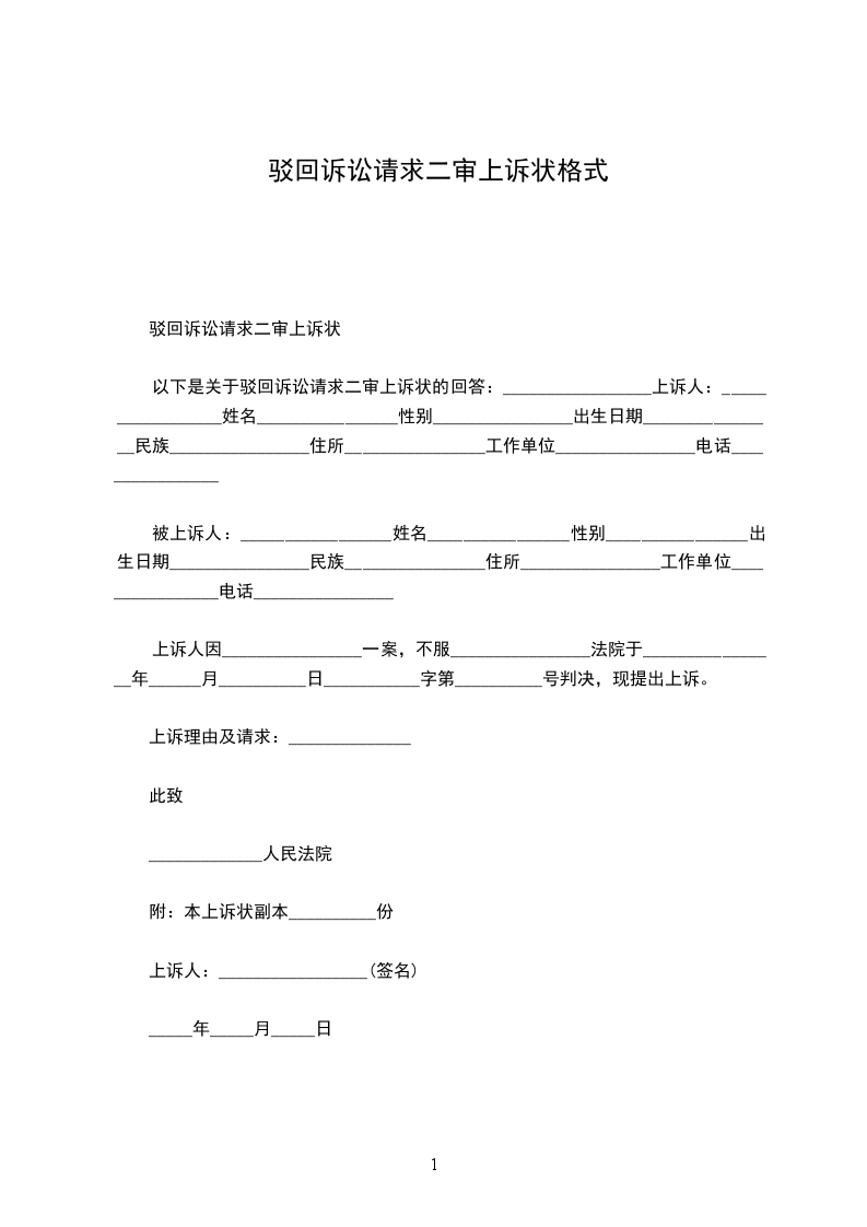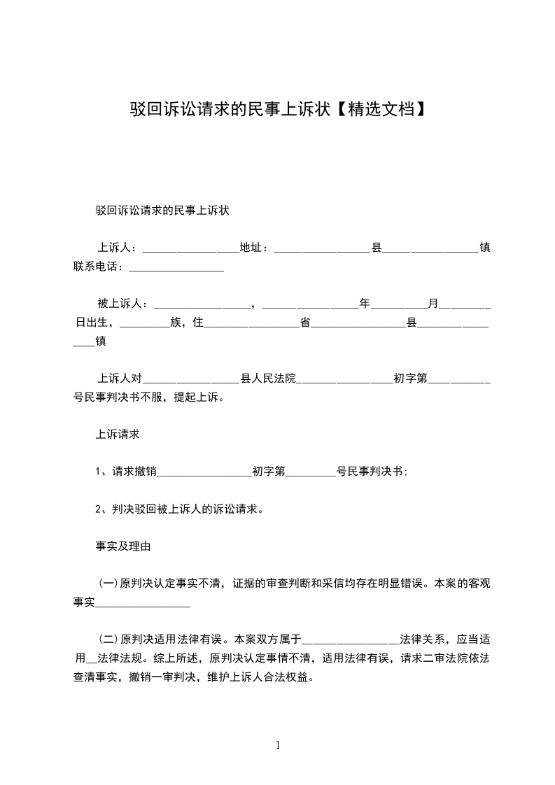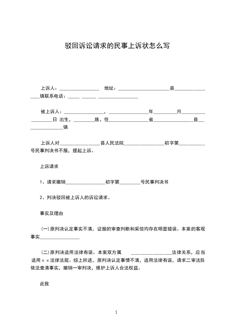 驳回诉讼请求的民事上诉状