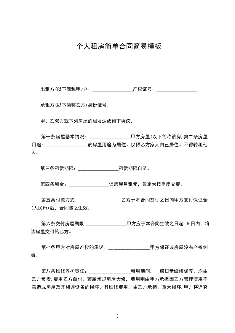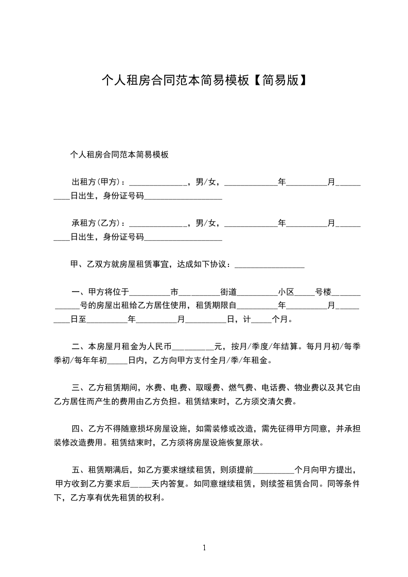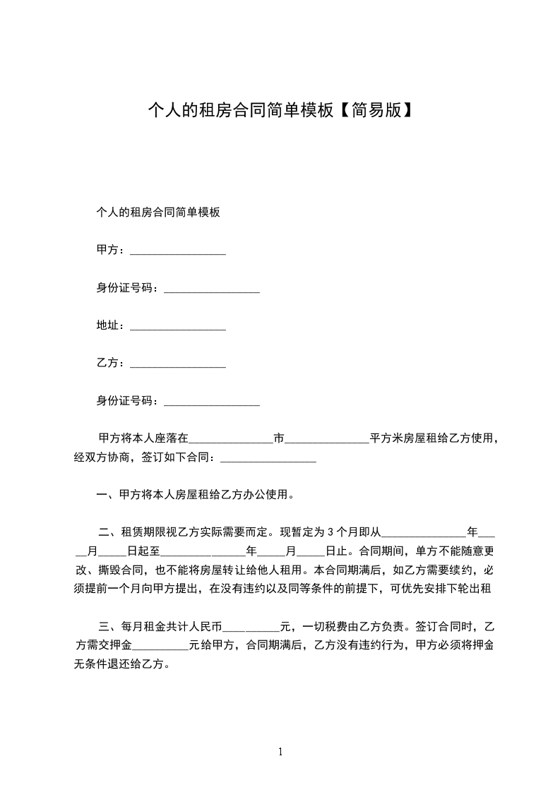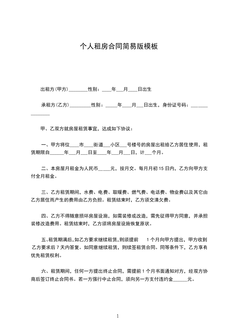 出租方(甲方):______________,男/女,_____________年__________月__________日出生,身份证号码___________________