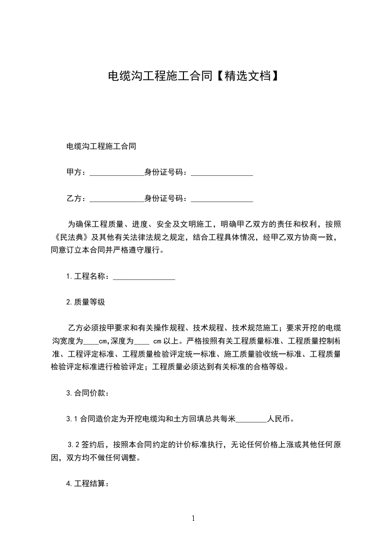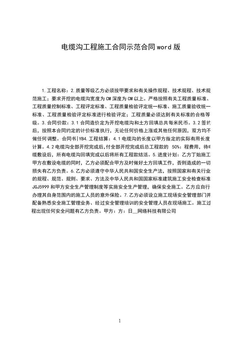 电缆沟工程施工合同