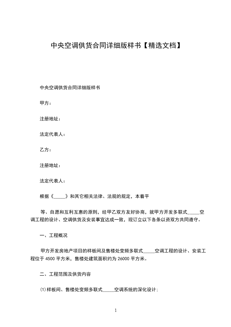 中央空调供货合同详细版样书
