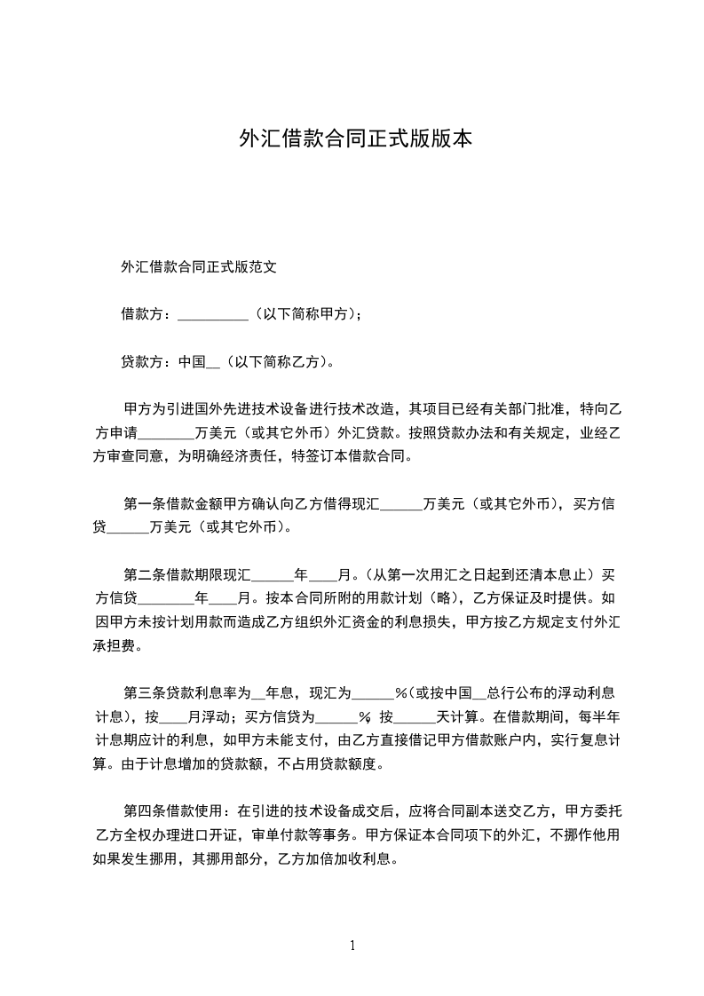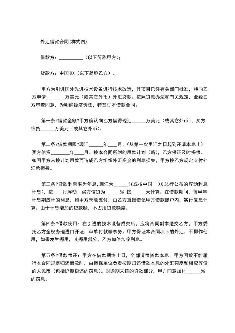 甲方为引进国外先进技术设备进行技术改造,其项目已经有关部门批准,特向乙方申请____万美元(或其它外币)外汇贷款。按照贷款办法和有关规定,业经乙方审查同意,为明确经济责任,特签订本借款合同。