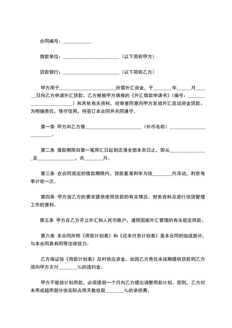 第二条借款期限现汇___年__月。(从第一次用汇之日起到还清本息止)买方信贷____年__月。按本合同所附的用款计划(略),乙方保证及时提供。如因甲方未按计划用款而造成乙方组织外汇资金的利息损失,甲方按乙方规定支付外汇承担费。