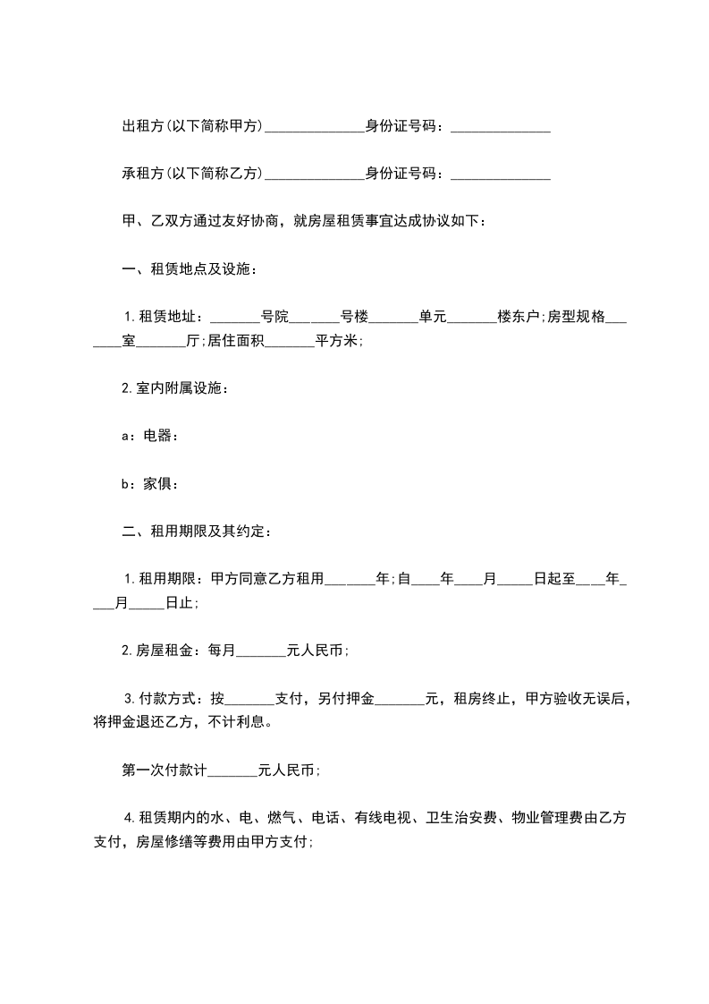 承租方(以下简称乙方)______________身份证号码:______________