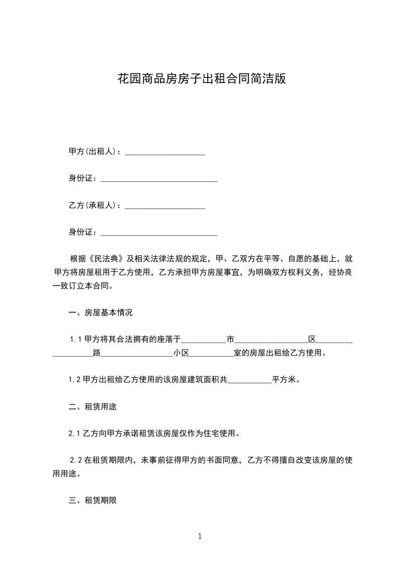 1.租赁地址:_______号院_______号楼_______单元_______楼东户;房型规格_______室_______厅;居住面积_______平方米;