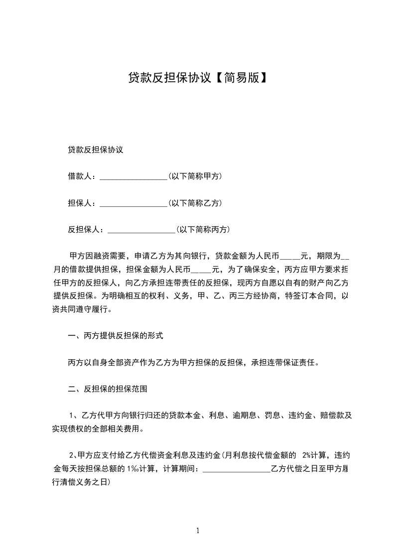 贷款反担保协议