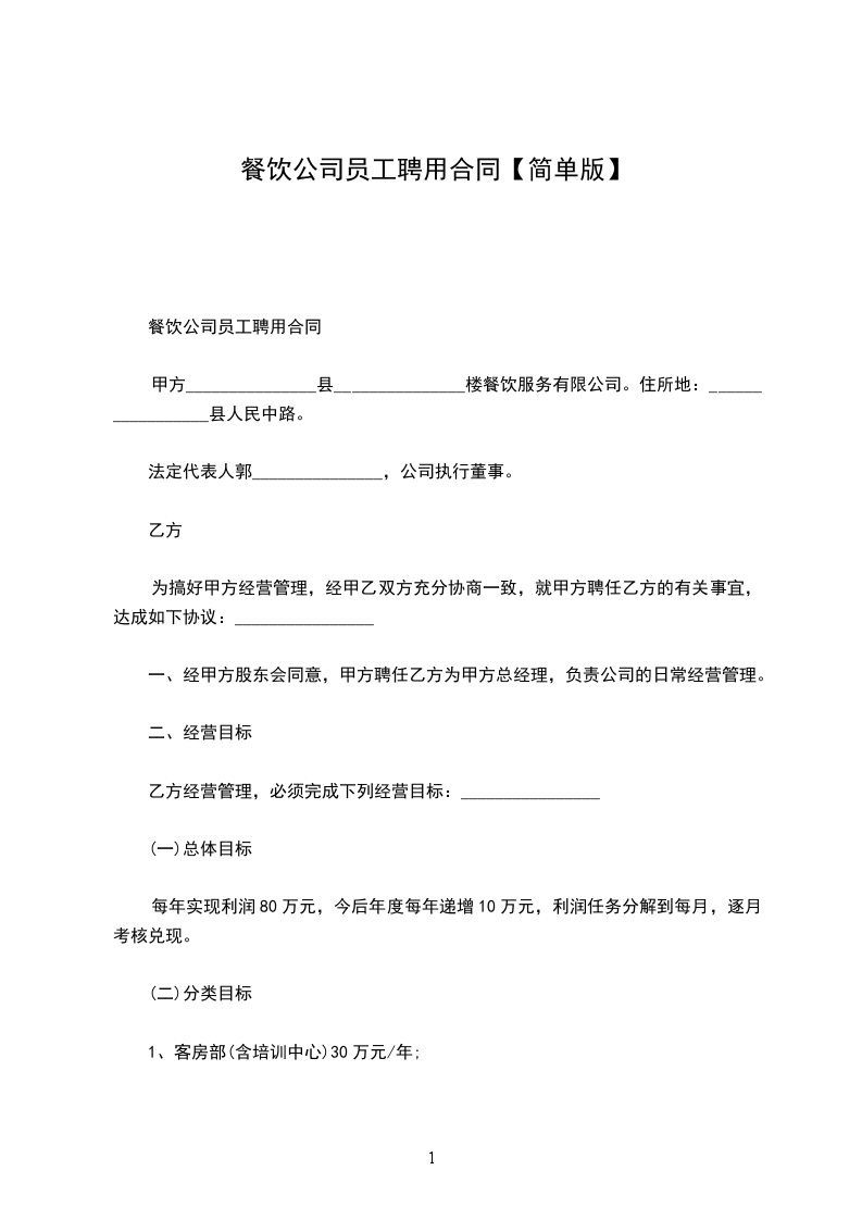 为搞好甲方经营管理,经甲乙双方充分协商一致,就甲方聘任乙方的有关事宜,达成如下协议:________________