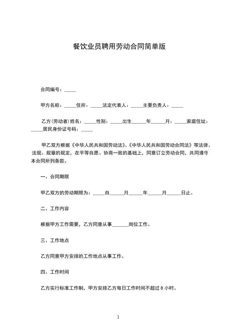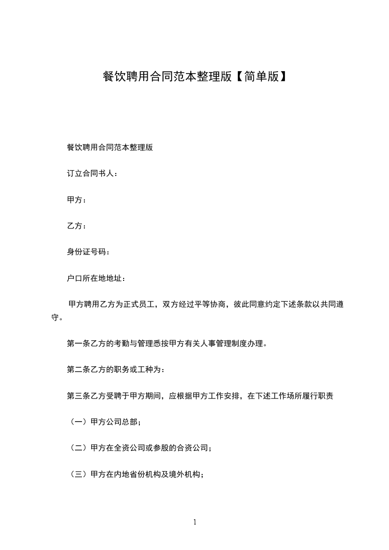 餐饮公司员工聘用合同